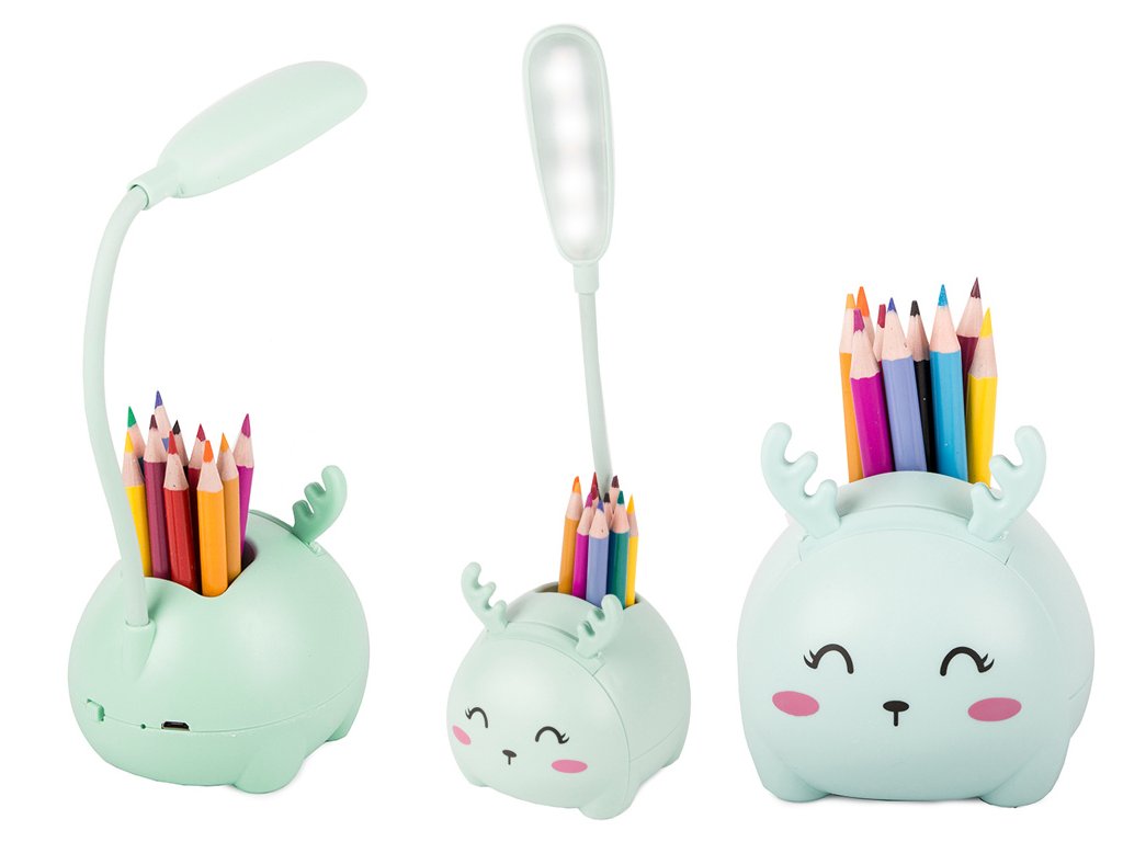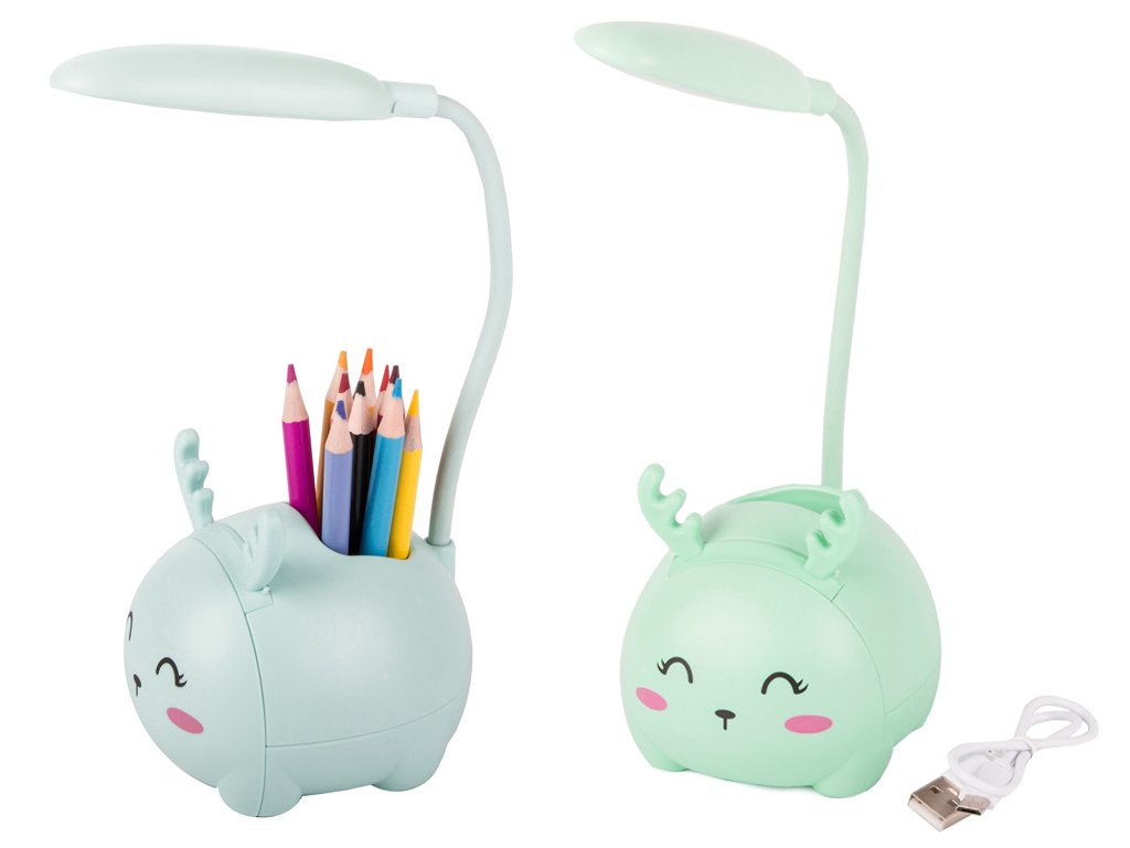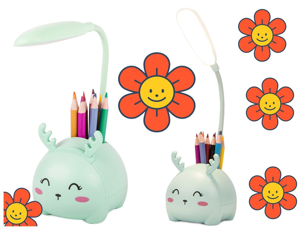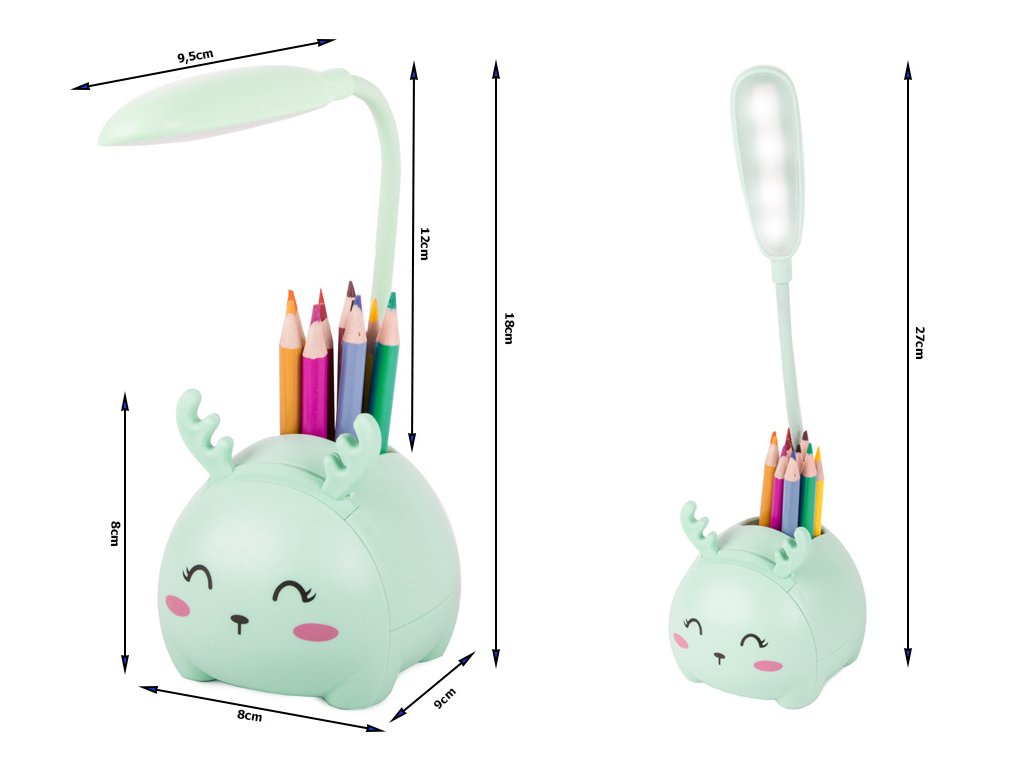 Lampička je vyrobena z pevného plastu, příjemného na dotek .Lampa se bude skvěle hodit i jako organizér na psací potřeby a jako stojánek na telefon.