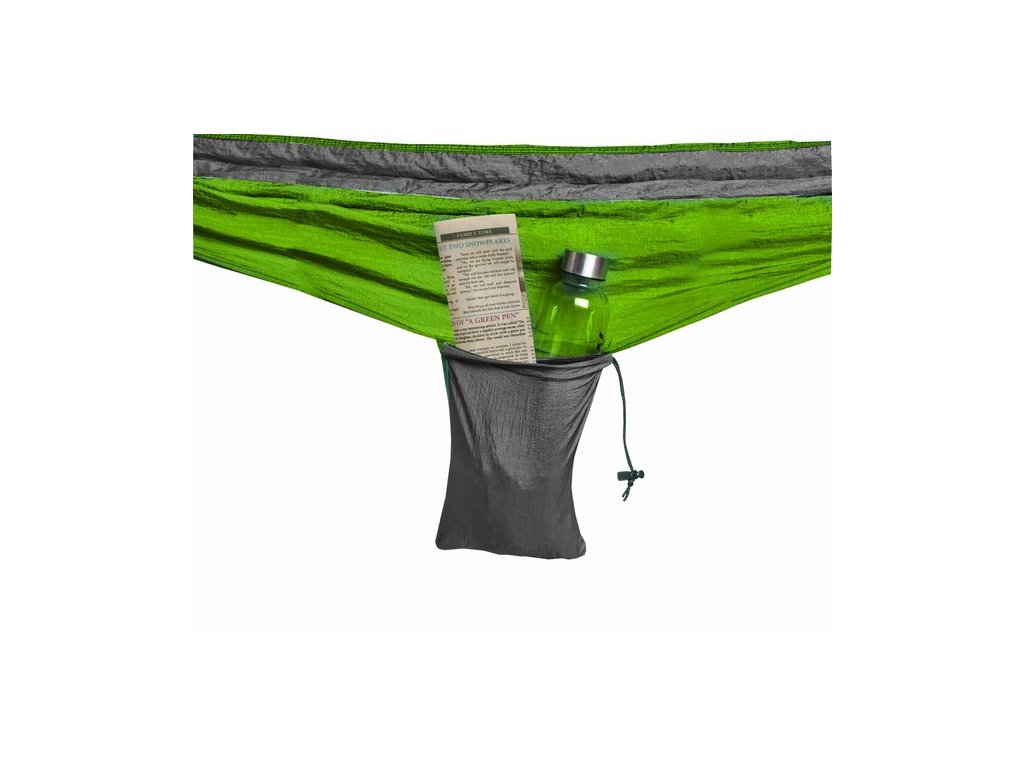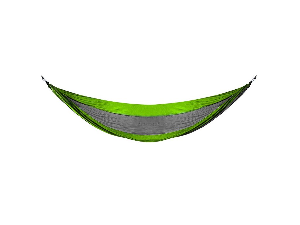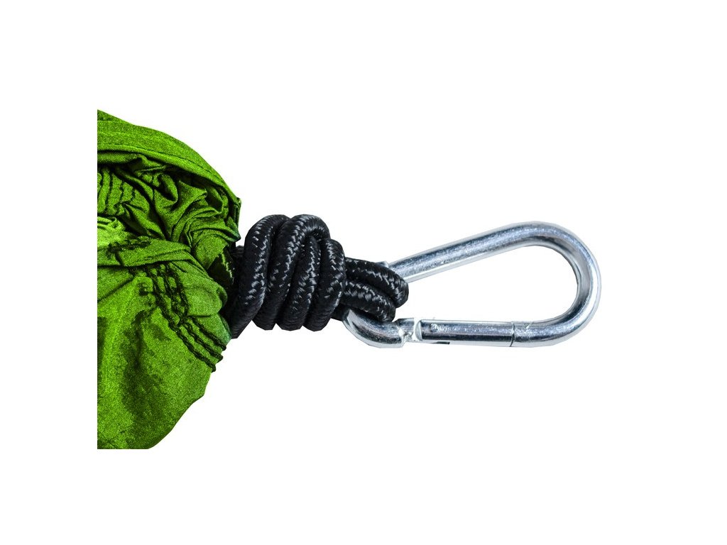 ?SPECIFIKACE - barva: zelenošedá; materiál: nylon, ostatní: PVC) + 2 karabiny (pozinkované železo) + 2 lana (nylon); maximální zatížení: 150 kg; rozměry (délka/šířka): 260/131 m0, cm; celková délka: 285cm; rozměry po složení (šířka/výška): 16/21 cm; délka lana: 210 cm; hmotnost: 0,65 kg; hmotnost balení: 0,65 kg.