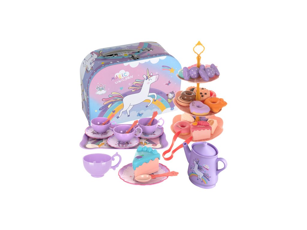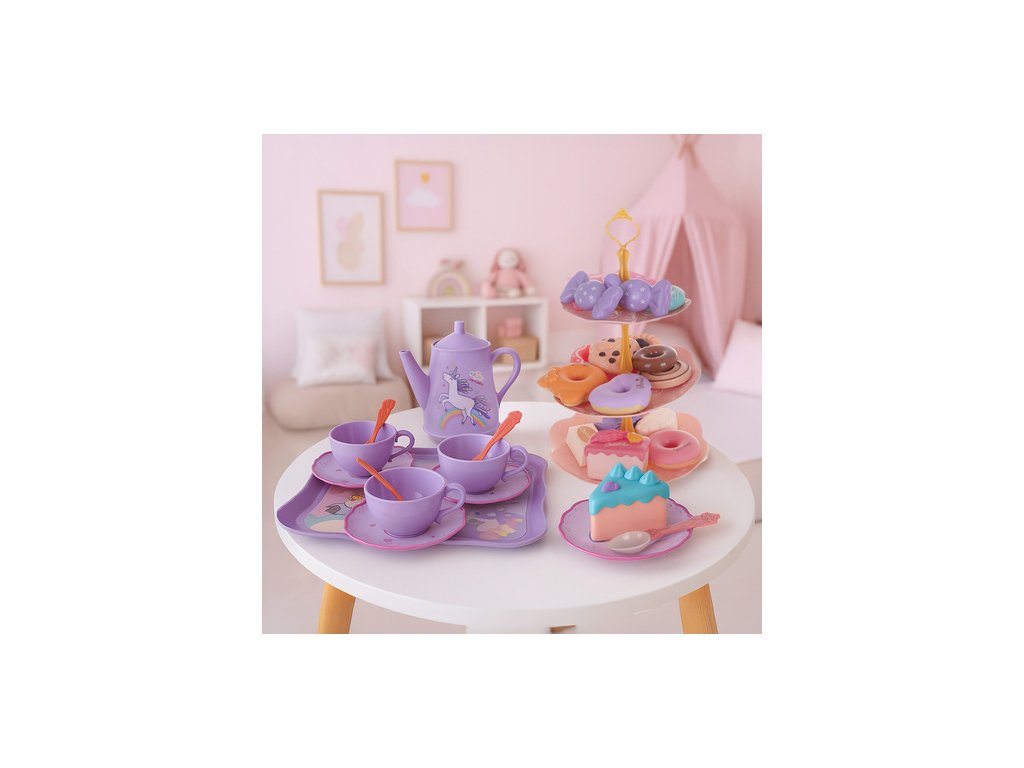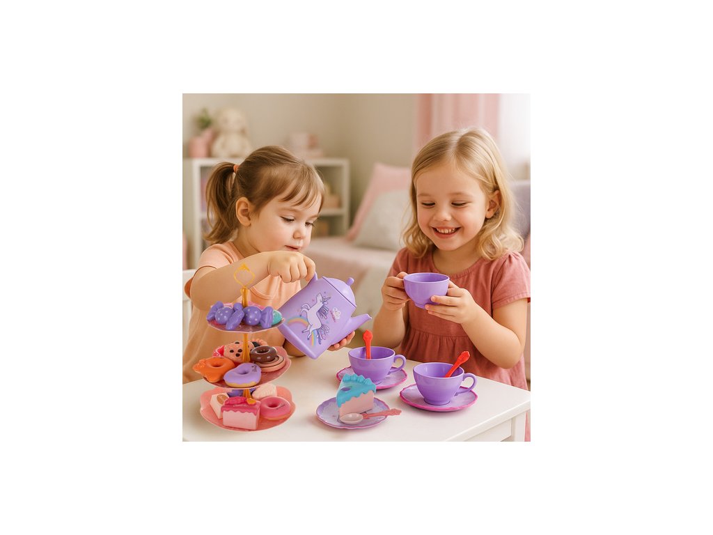 rozvoj představivosti – konvici na čaj, hrnky, talíře a lákavě vypadající sušenky povzbuzovat kreativní hru doma, rozvíjet sociální dovednosti, komunikaci a hraní rolí