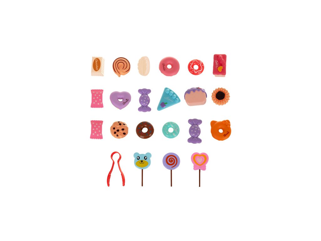 - 21 pamlsků: bonbóny, koblihy, makronky, sušenky