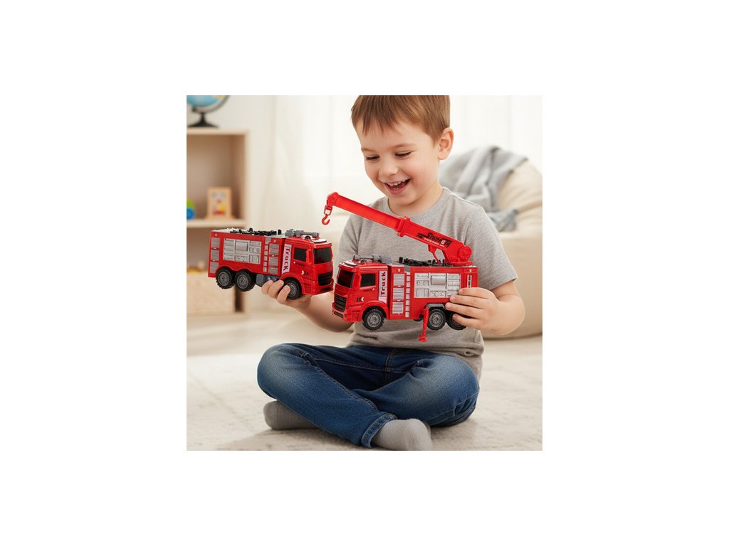 6 funkčních vozidel s pohyblivými částmi - Sada obsahuje šest různých záchranných vozidel, každé s unikátními funkcemi a pohyblivými prvky, jako je zatahovací žebřík s košem, výsuvné rameno, zvedací záchranný koš, otočná věž a vodní dělo