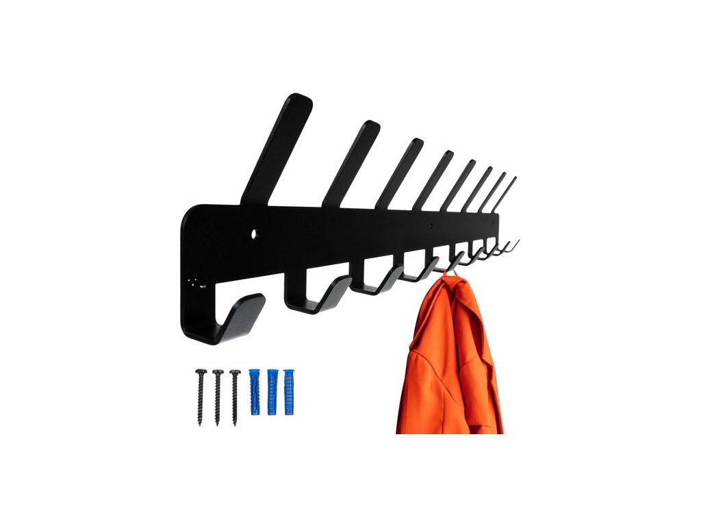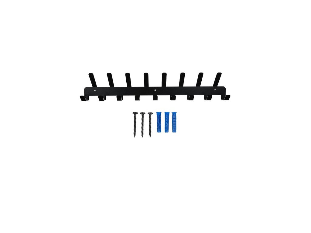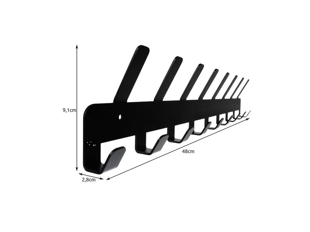 - SPECIFIKACE - barva: černá; materiál: práškově lakovaná ocel; 17 háčků; rozměry: 9,1 x 48 x 2,8 cm; hmotnost: 0,426kg; hmotnost v balení: 0,511 kg.