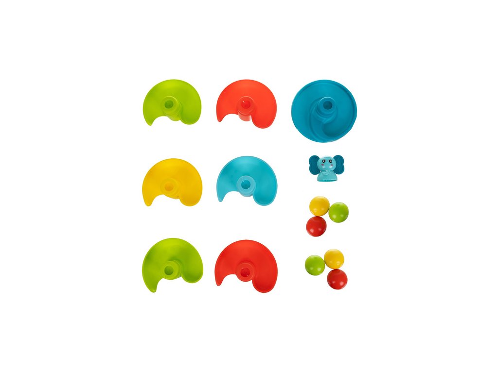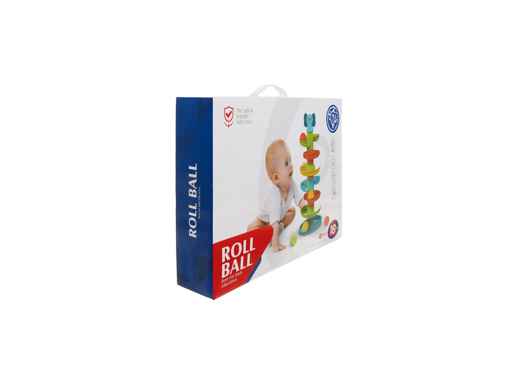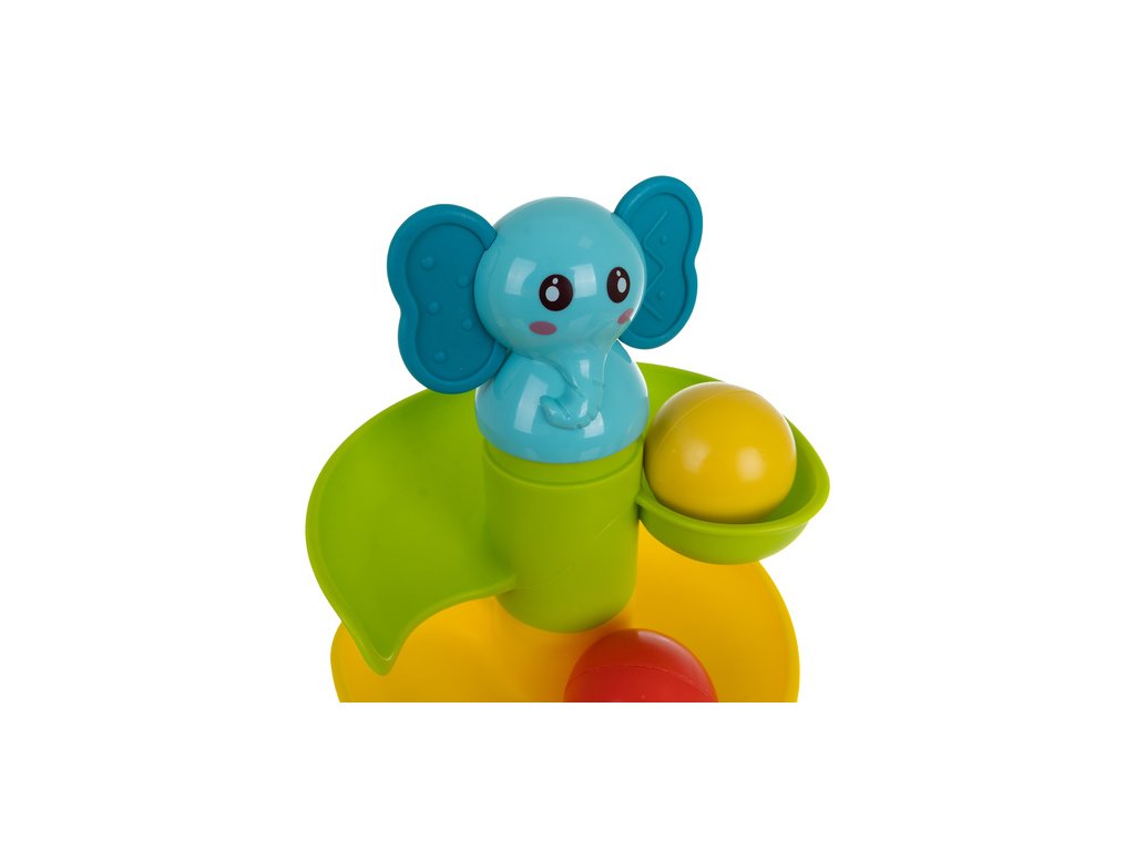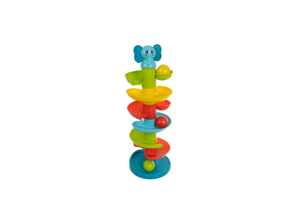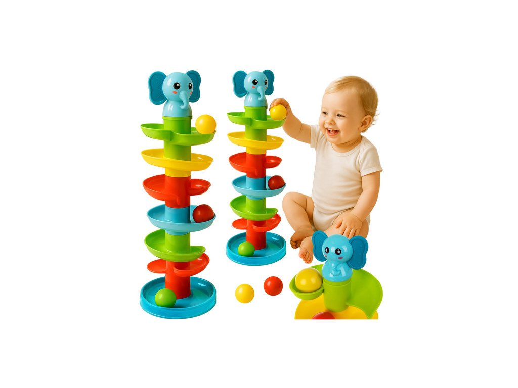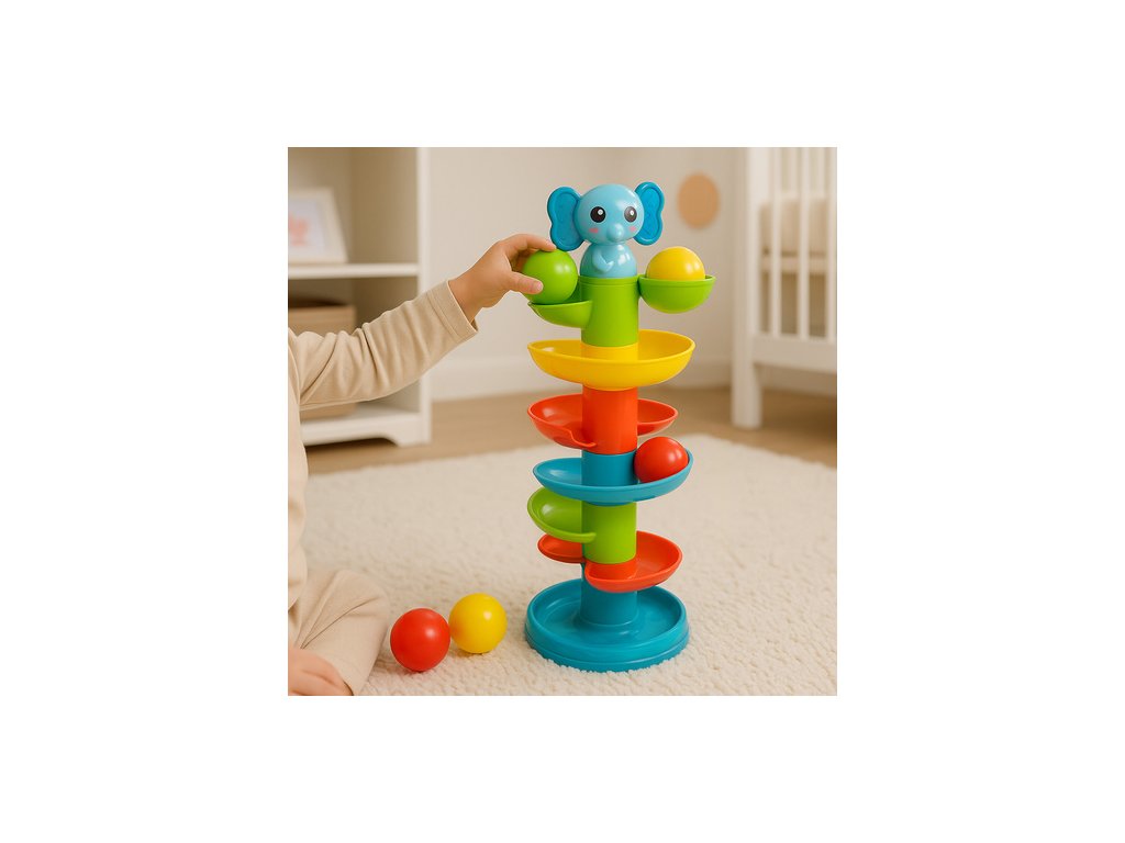 - rozvoj hrou – Batole si procvičuje jemnou motoriku, koordinaci rukou a očí a logické myšlení tím, že skládá míčky na vrchol věže a sleduje jejich cestu dolů.