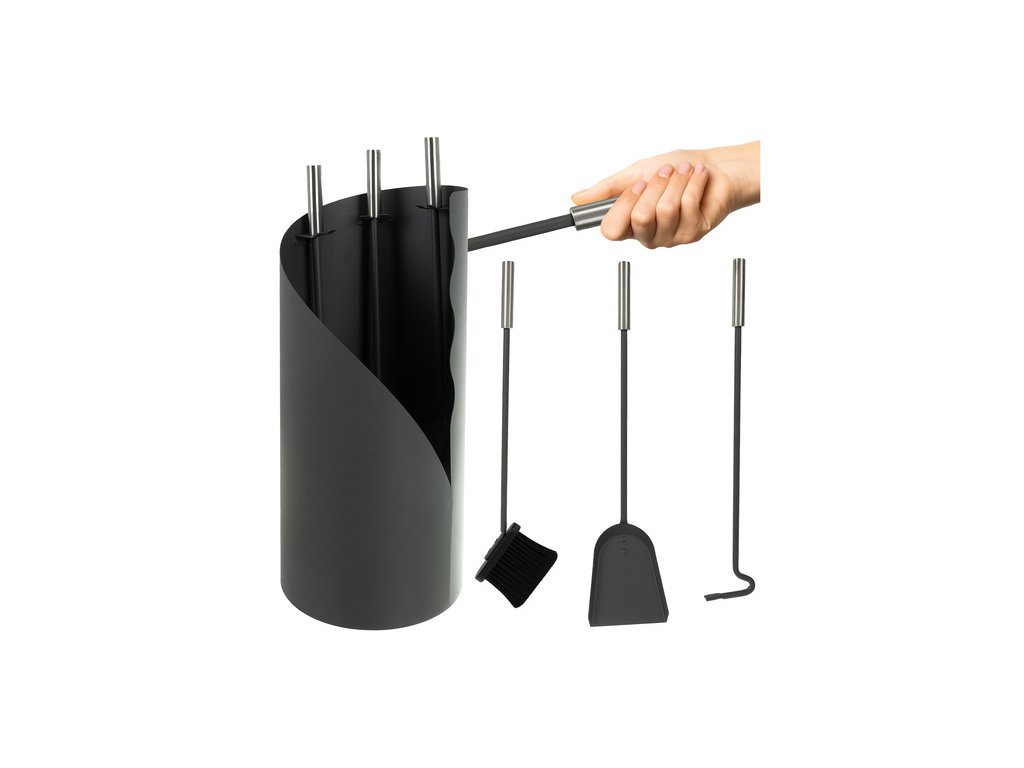 Sada 4 v 1 – sada obsahuje všechny prvky potřebné k provozování krbů a jiných typů ohňů: lopatu, koště a pohrabáč , díky čemuž je sada všestranná a vše se vejde do přiložené úložné krabice stánek