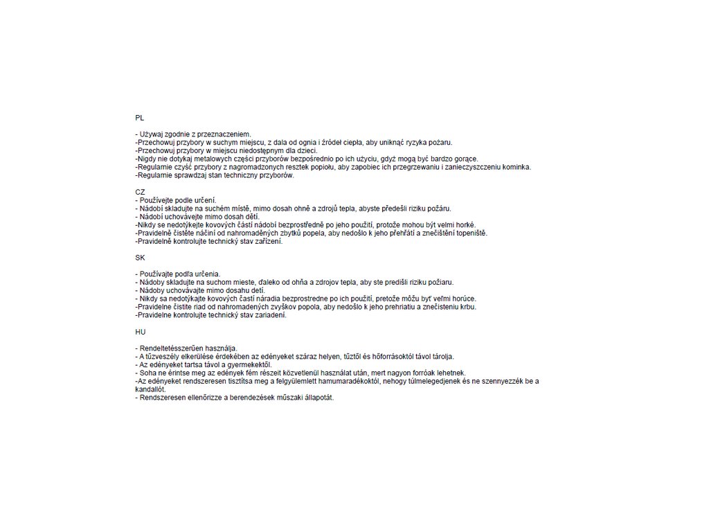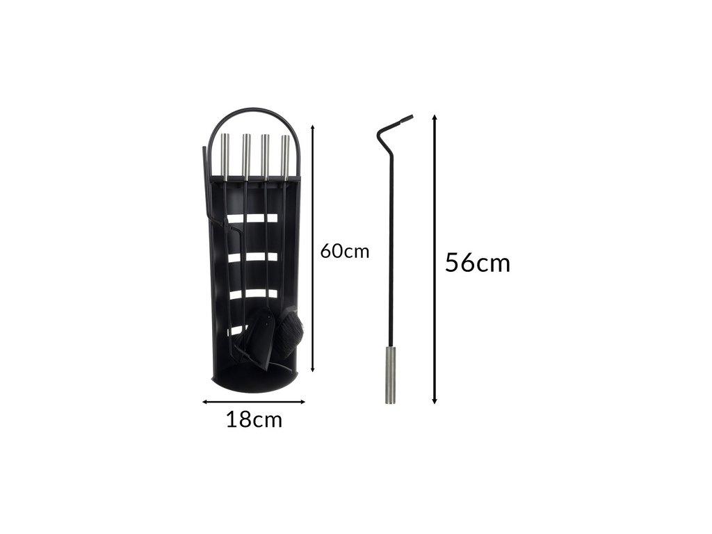 Sada 5 v 1 – sada obsahuje všechny potřebné prvky pro údržbu krbů a jiných typů ohňů: kleště, lopatu, koště a pohrabáč , díky čemuž je sada všestranná. To vše se vejde na přiložený stojan .