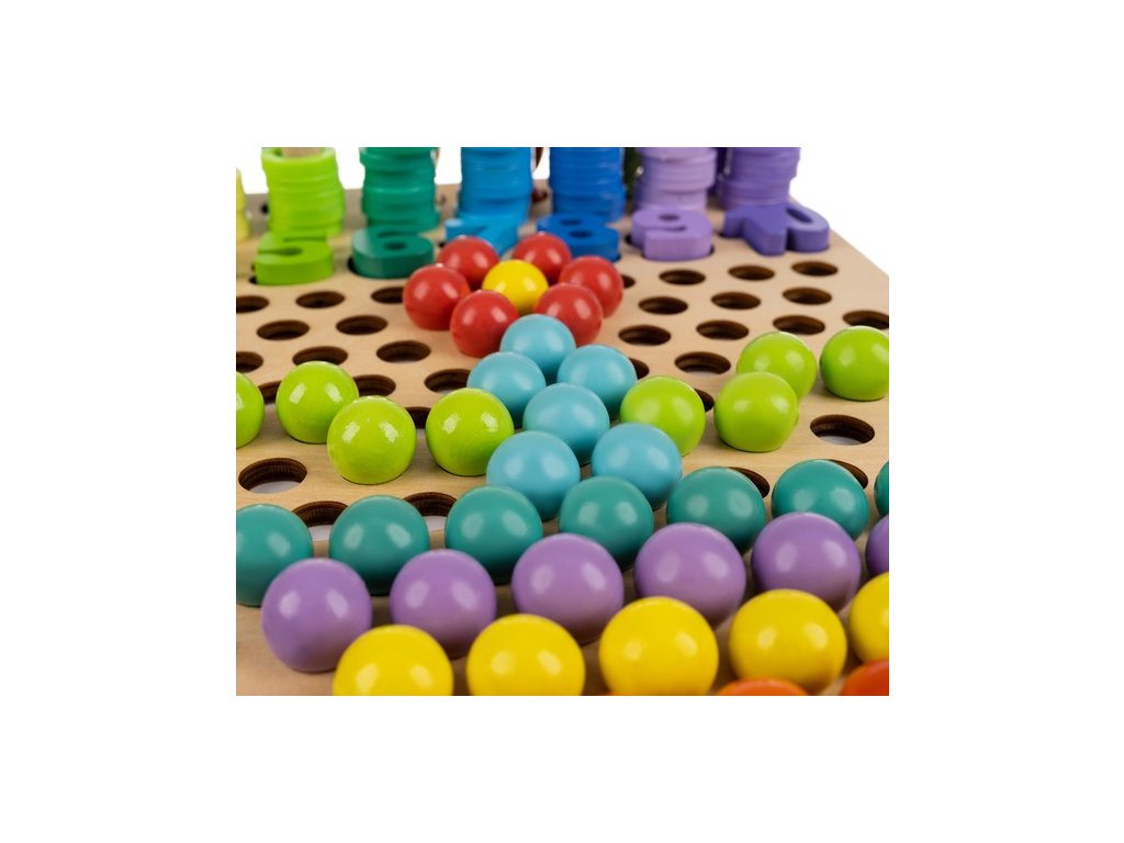 Puzzle z mozaikových korálků, které je součástí nabídky, je skvělou zábavou pro kreativní děti. Je vyrobena z přírodního materiálu, dřeva, jehož krásu a odolnost ocení každý. Tento materiál vypadá velmi dobře jak v přírodním stavu, tak natřený. Sada obsahuje mnoho barevných prvků, ze kterých může dítě vytvářet různé vzory.