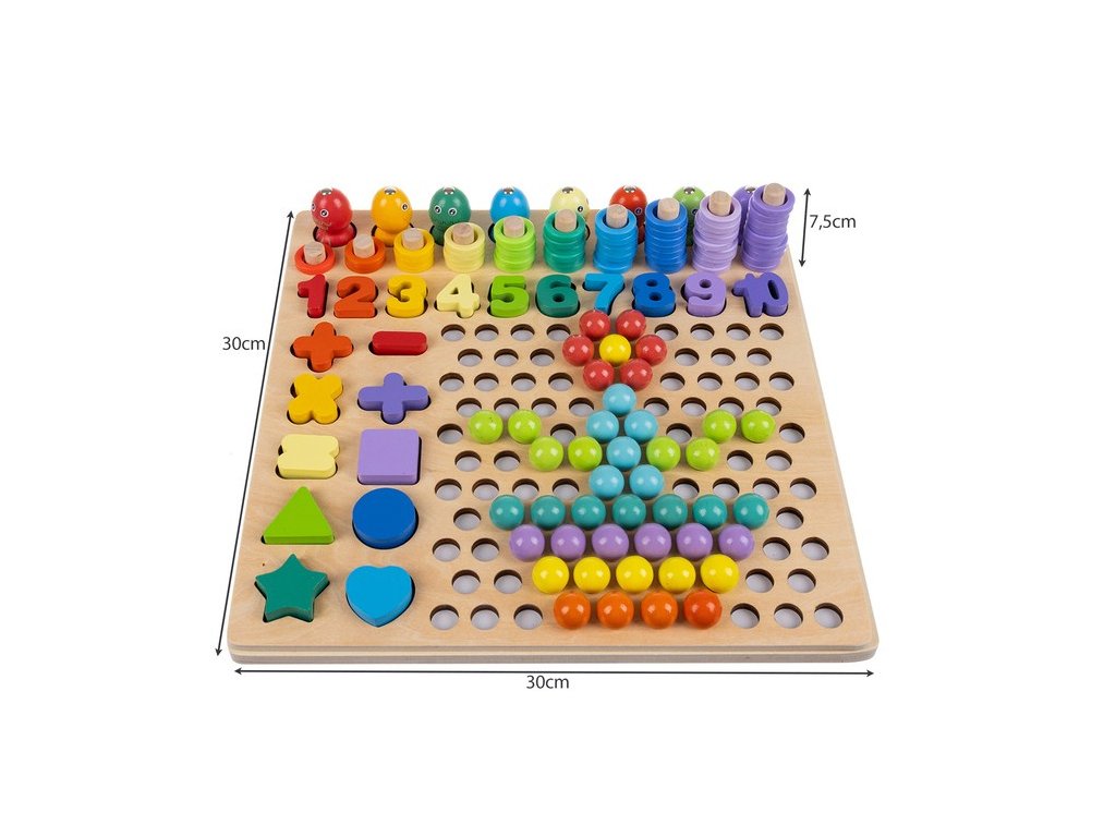 - SPECIFIKACE – materiál: lipové dřevo + koule: dřevo + PE kruhy + čísla, geometrické obrazce, znaky matematických operací MDF + rybí dřevo + železo + PE formy + oboustranné desky papír + palice dřevo + kleště dřevo + lžíce dřevo + rybářský prut dřevo + PP + PS + magnet; rozvíjí schopnosti soustředění a trpělivosti; pomáhá při učení; rozměry: 30 x 30 x 7,5 cm; hmotnost: 1,202 kg; hmotnost balíku: 1,436 kg.