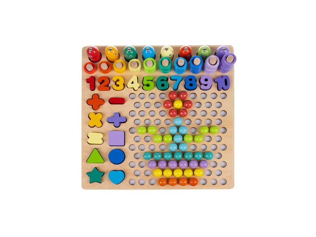 - TEACHES - puzzle z dřevěných korálků je také velmi dobré pro učení čísel a může být také užitečné při provádění jednoduchých matematických operací . S jeho pomocí se dítě rychle naučí poznávat barvy a vytvářet geometrické obrazce s korálky .