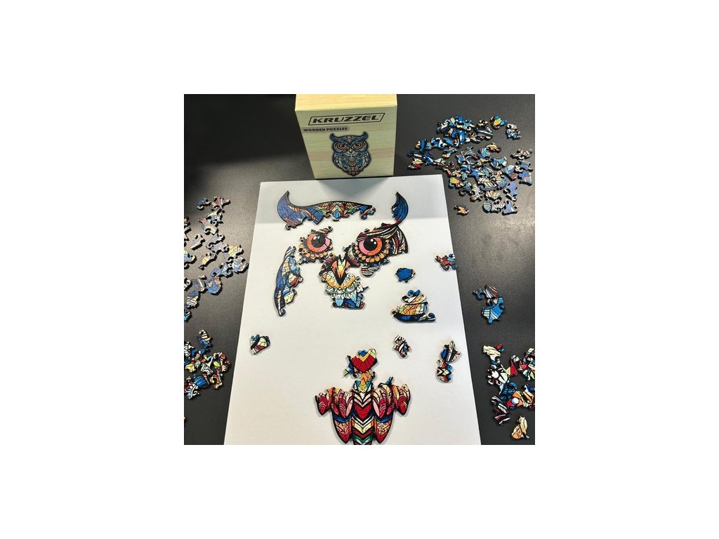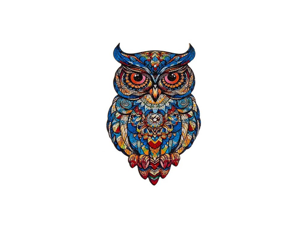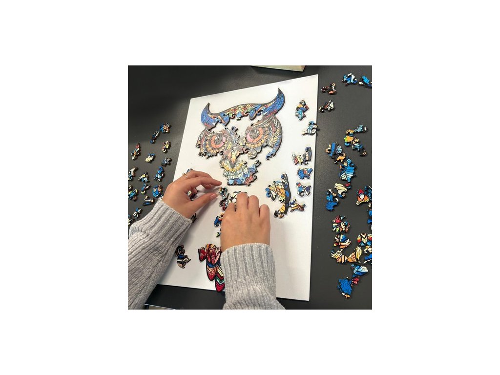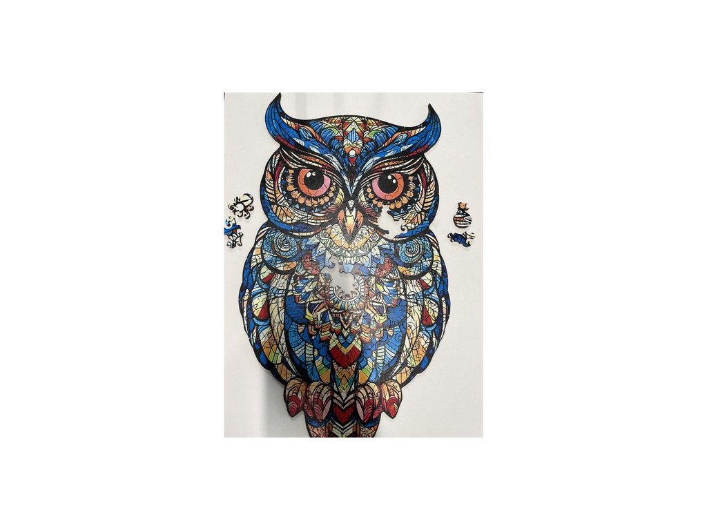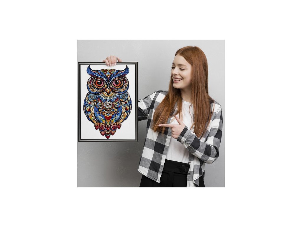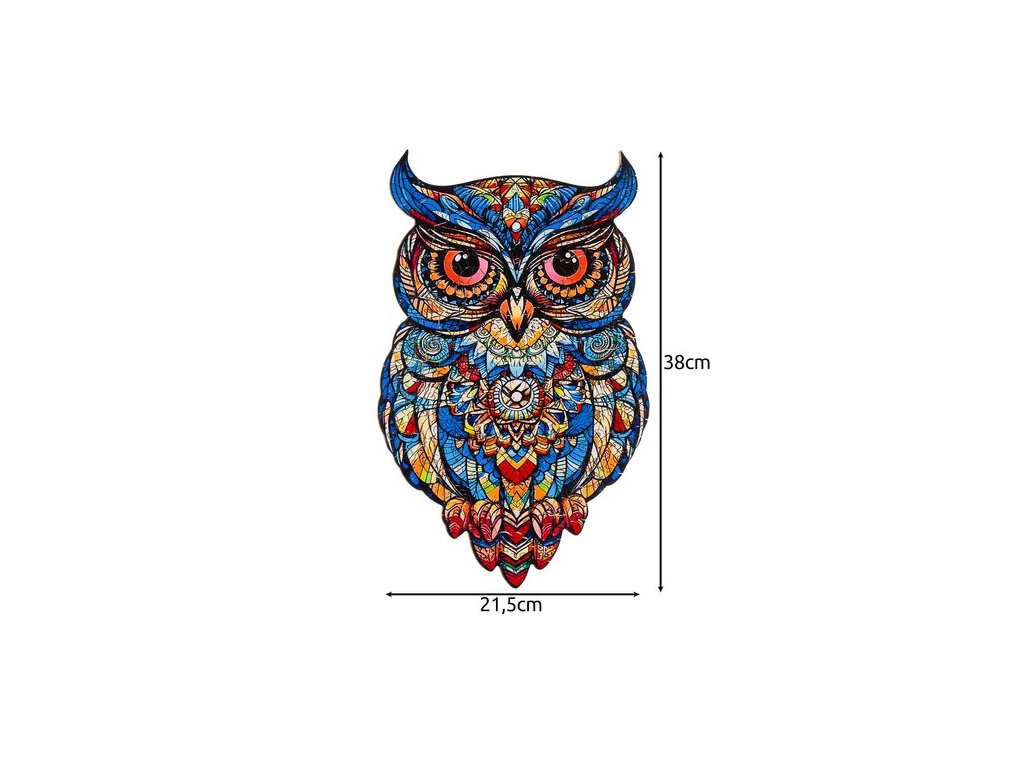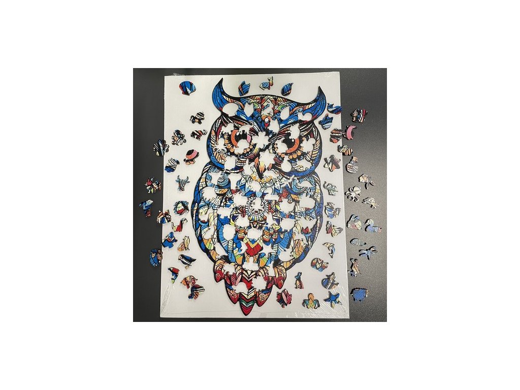 Po sestavení skládačky vznikne krásný dílek, barevná sova , skládající se z různých vzorů a barevných grafických motivů. Puzzle má nepravidelný tvar , který odráží siluetu ptáka, což mu dodává na jedinečnosti. Při montáži se vyplatí použít grafiku na krabici jako vodítko.