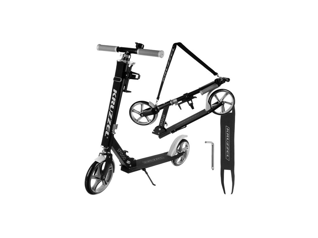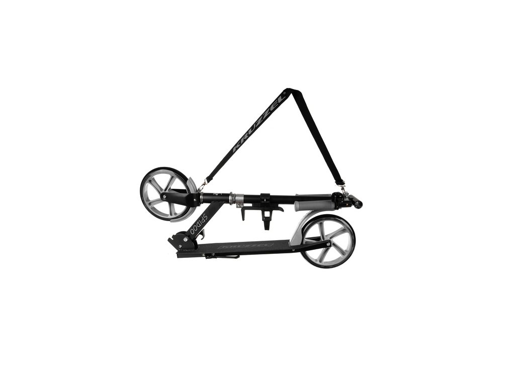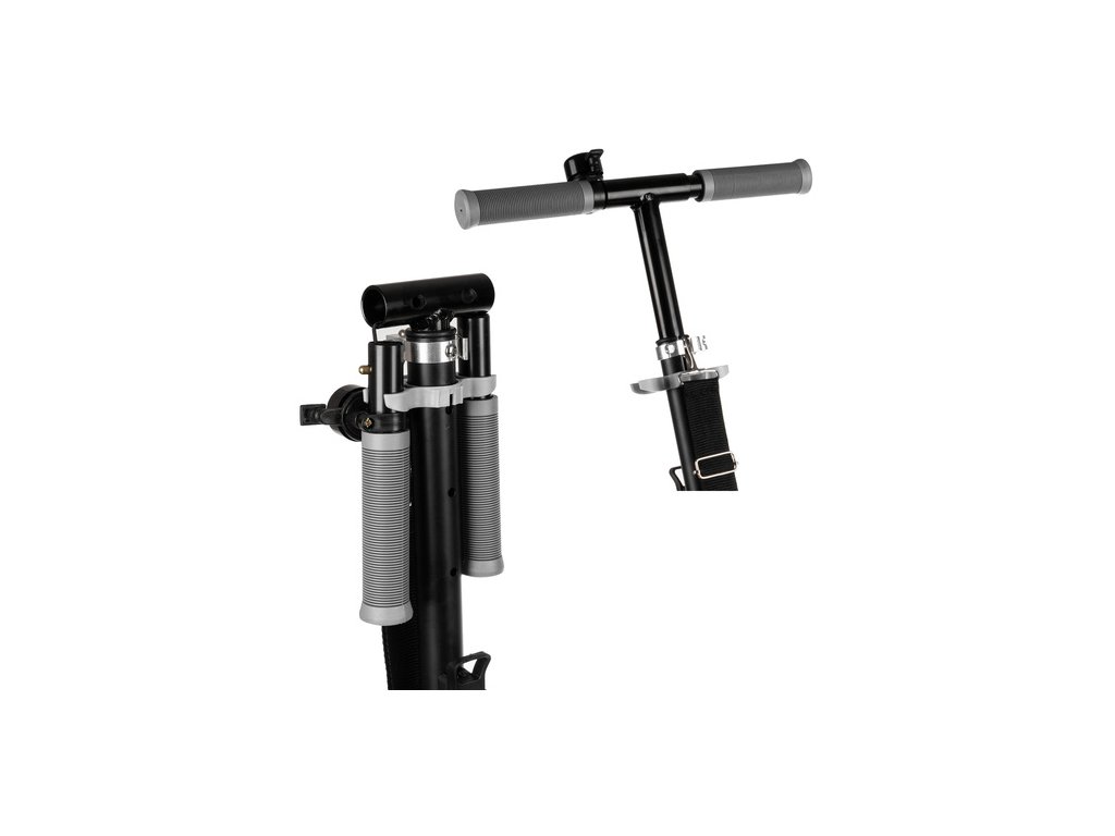 snadno se skládá a přepravuje - díky funkci skládací a díky pevnému, nastavitelnému popruhu se koloběžka snadno vezme kamkoli navzájem