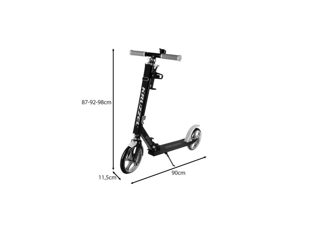 Skládací městská koloběžka pro děti s velkými 200mm koly, lehká a s brzdou, černošedá - ideální pro jízdy po městě!
