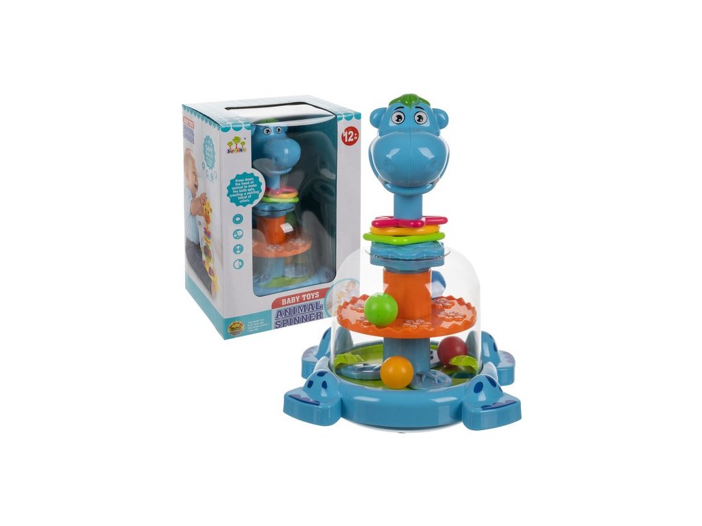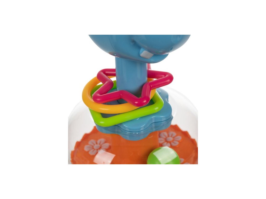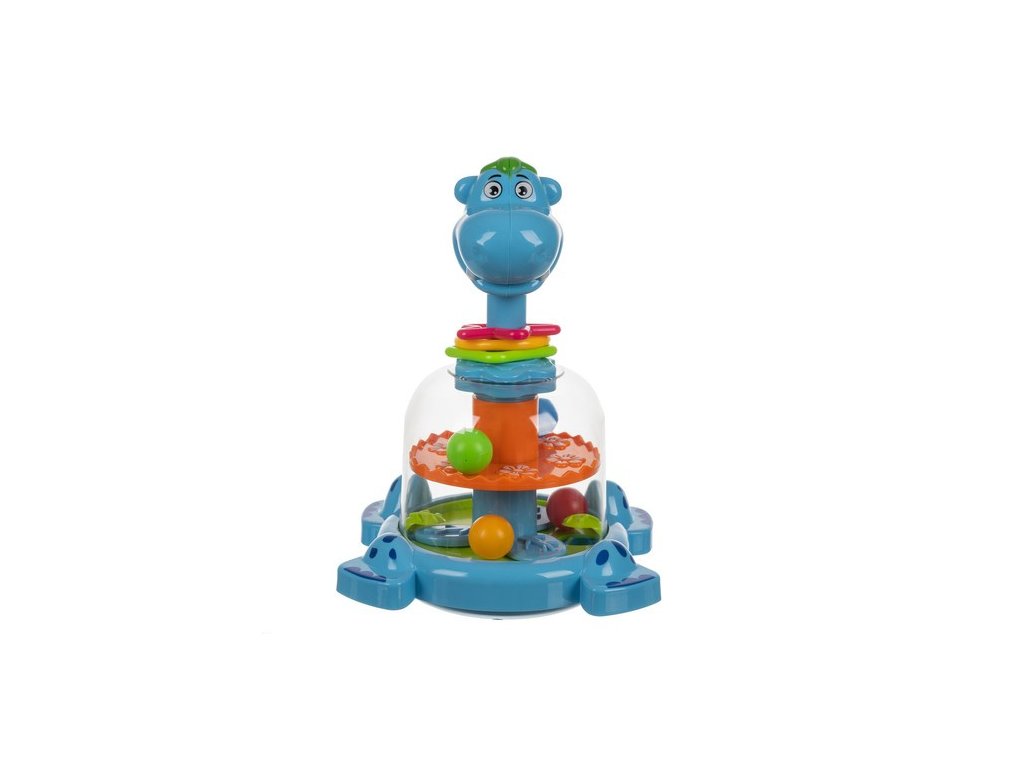 - PODPORA RUČNÍHO VÝVOJE A KOORDINACE POHYBU - hračka poskytuje nejen zábavu, ale především podporuje rozvoj manuálních dovedností dítěte a koordinaci oko-ruka . Přitlačit hroší hlavu na hlavu a sledovat, jak se koule točí, je skvělý způsob, jak toho dosáhnout rozvíjet zručnost a sílu rukou dítě. Navíc točící se kolo a skákací míčky učí batole vztahy příčiny a následku a rozvíjejí je logické myšlení a soustředění .