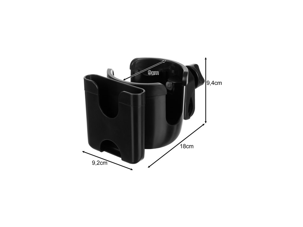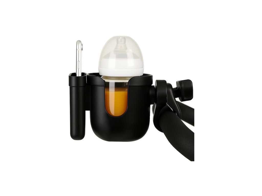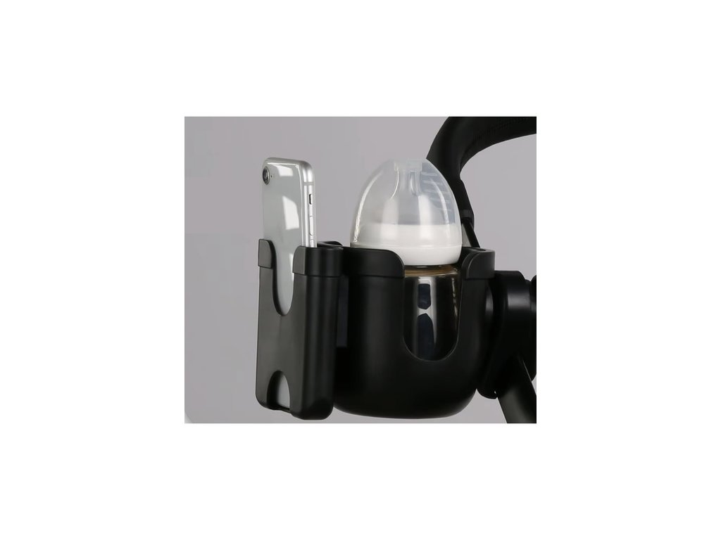 a slušnou kapacitu – pasuje na většinu chytrých telefonů a kojeneckých lahví, Držák udrží telefon až do cca. Šířka 9,2 cm - také v pouzdře, stejně jako standardní kojenecké lahve, termohrnky a dokonce i lahve na vodu , je to praktický organizér na procházku