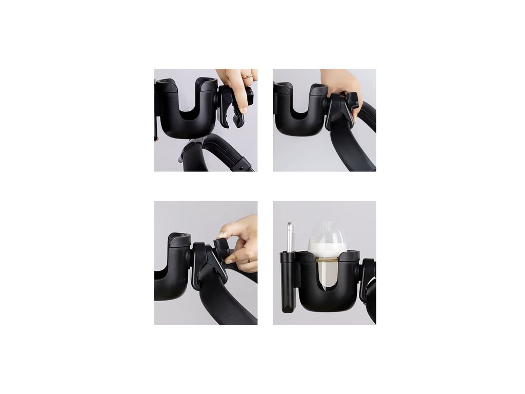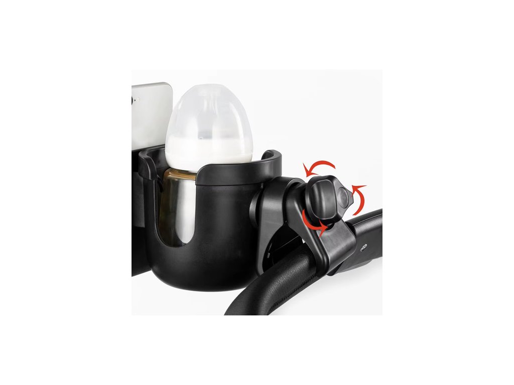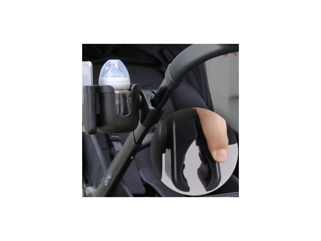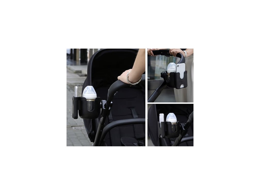 univerzální střih - díky nastavitelnému upínacímu mechanismu se hodí do většiny kočárků Držák na lahev a telefon lze snadno namontovat na rukojeť kočárku o průměru až 5 cm bez použití nářadí a skvěle funguje jak na hlubokých, tak i na odkládacích kočárcích.