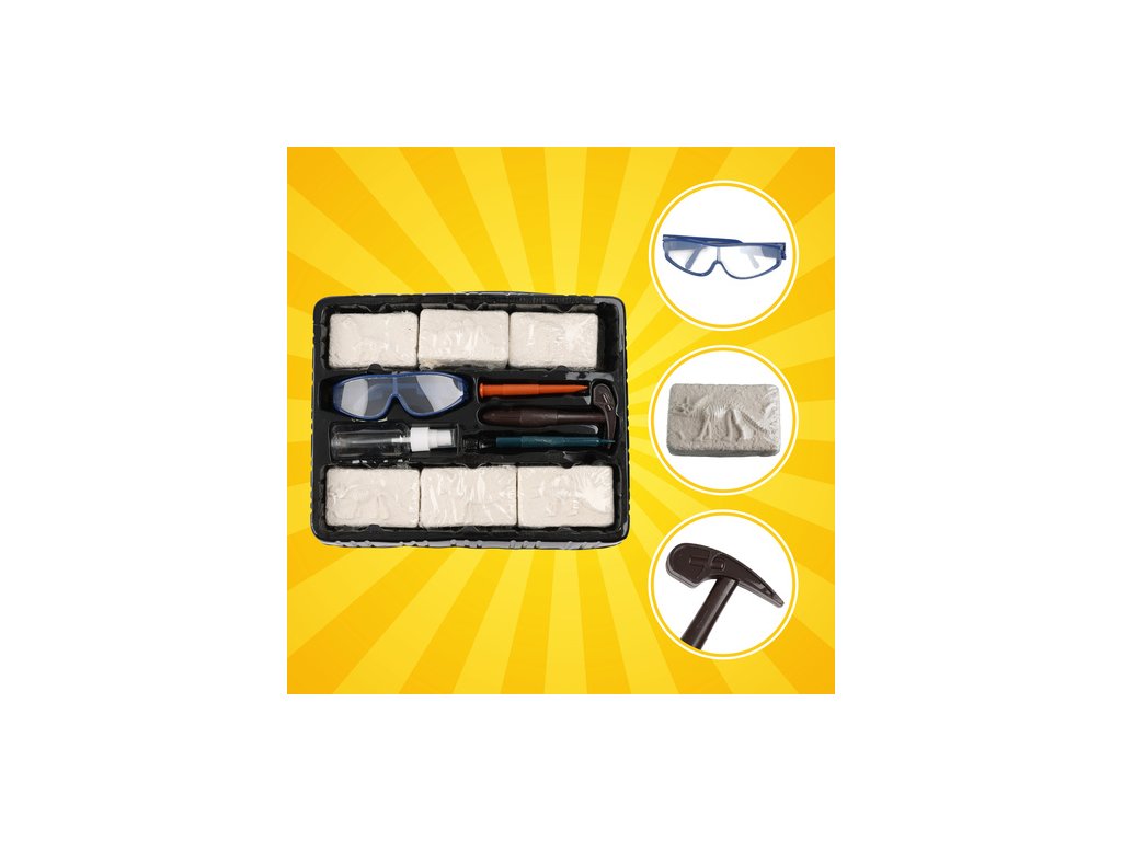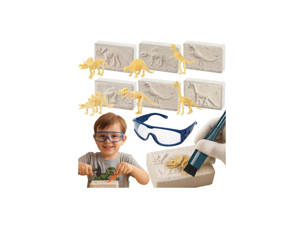 6 úžasných dinosaurů v jedné sadě - uvnitř je 6 sádrových kostek se skrytými kostrami dinosaurů, jako je Tyrannosaurus Rex nebo Spinosaurus, což zaručuje hodiny fascinující zábavy.
