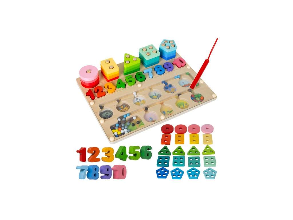 - 3 funkce v 1 hračce - magnetické bludiště, geometrické obrazce a čísla v jedné sadě 30×22,5 cm – jedna hrací deska, mnoho příležitostí k učení a hraní.