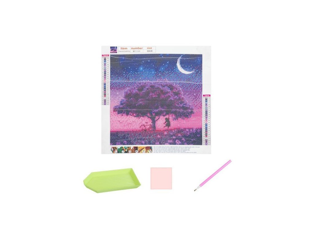 - SPECIFIKACE – vzor: strom; plátno pokryté lepicí vrstvou: ano; sada obsahuje: barevné diamanty, aplikátor, suché lepidlo, nádobku; rozměr: 30x30 cm; rozměr obrázku: 25x25cm; hmotnost: 0,1 kg; hmotnost balení: 0,103 kg
