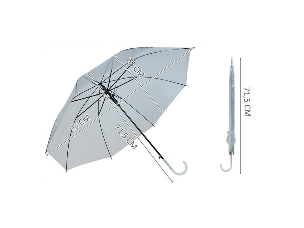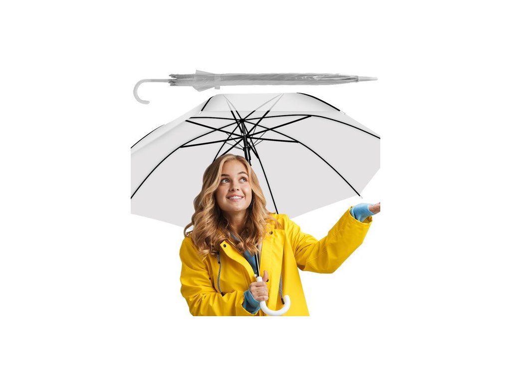 - PRŮHLEDNÝ – díky průhlednému nátěru je výrobek velmi funkční; osoba pod deštníkem je jasně viditelná, což je zvláště důležité při fotografování nebo nahrávání; úkol fotografa nebo kameramana je jednodušší a deštník sám o sobě je hezkou dekorací; při chůzi v dešti můžete sledovat, jak se kapky tříští o potah deštníku, což bude bavit zejména mladší uživatele; usnadňuje výhled na silnici a zvyšuje bezpečnost, když je nutné deštník držet šikmo kvůli silnému dešti.
