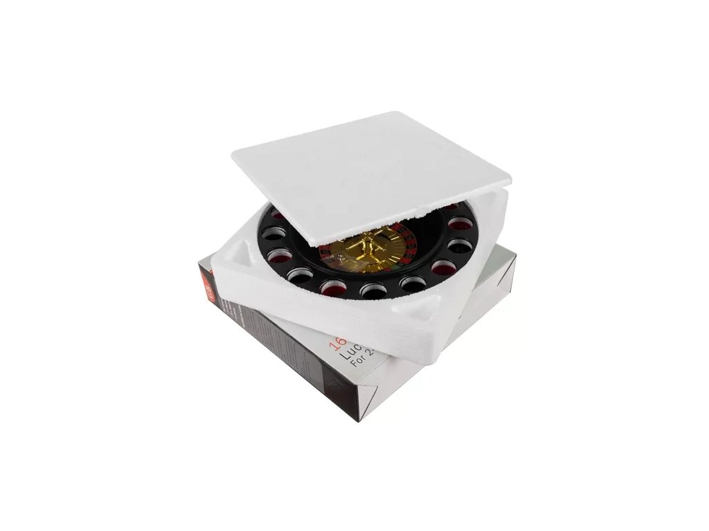 ZNAČENÉ BRÝLE – Sada obsahuje 16 sklenic, každá označená číslem a barvou. Jednoduše je naplňte nápoji a roztočte ruletovým kolem. Pokud vyhrajete, můžete vypít obsah sklenice; pokud prohrajete, ztrácíte tah.