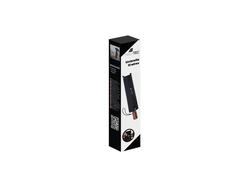 Deštník je odolný vůči mírným větrným podmínkám, ale při silných poryvech se může poškodit. Používejte opatrně v obtížných povětrnostních podmínkách.