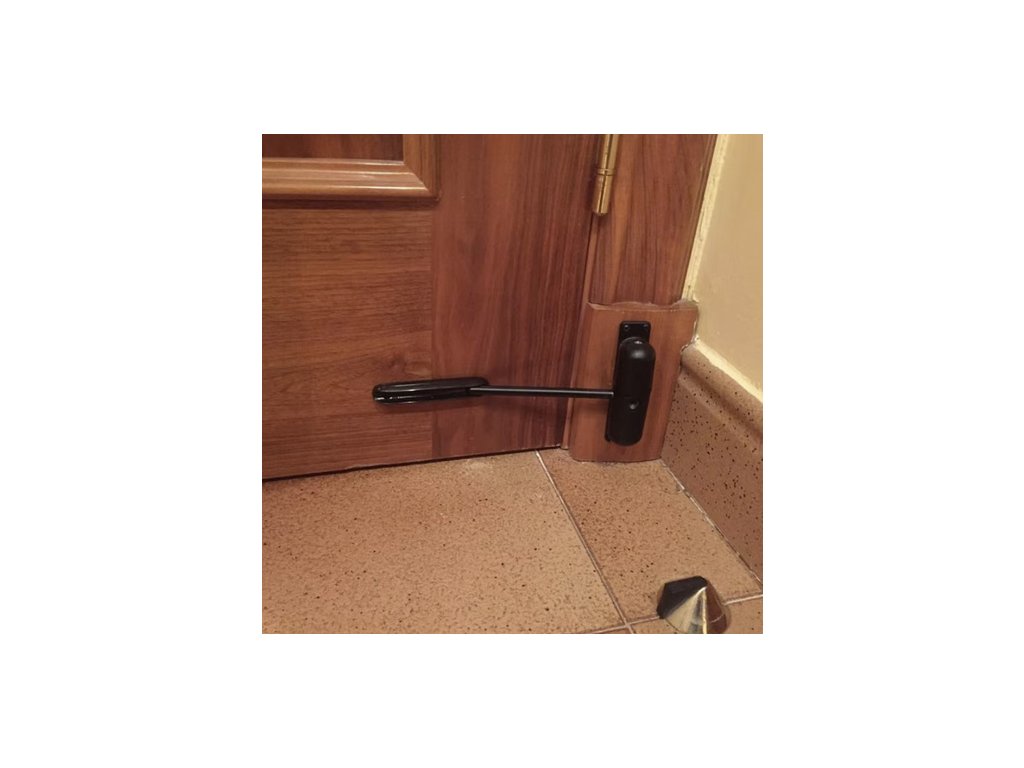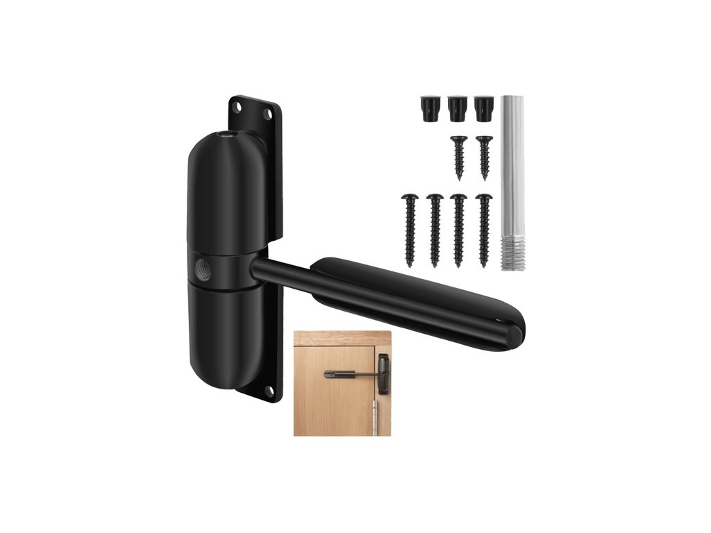 Zavírač dveří černý s ramenem, zavírač, západka pro dveře do hmotnosti 60 kg!