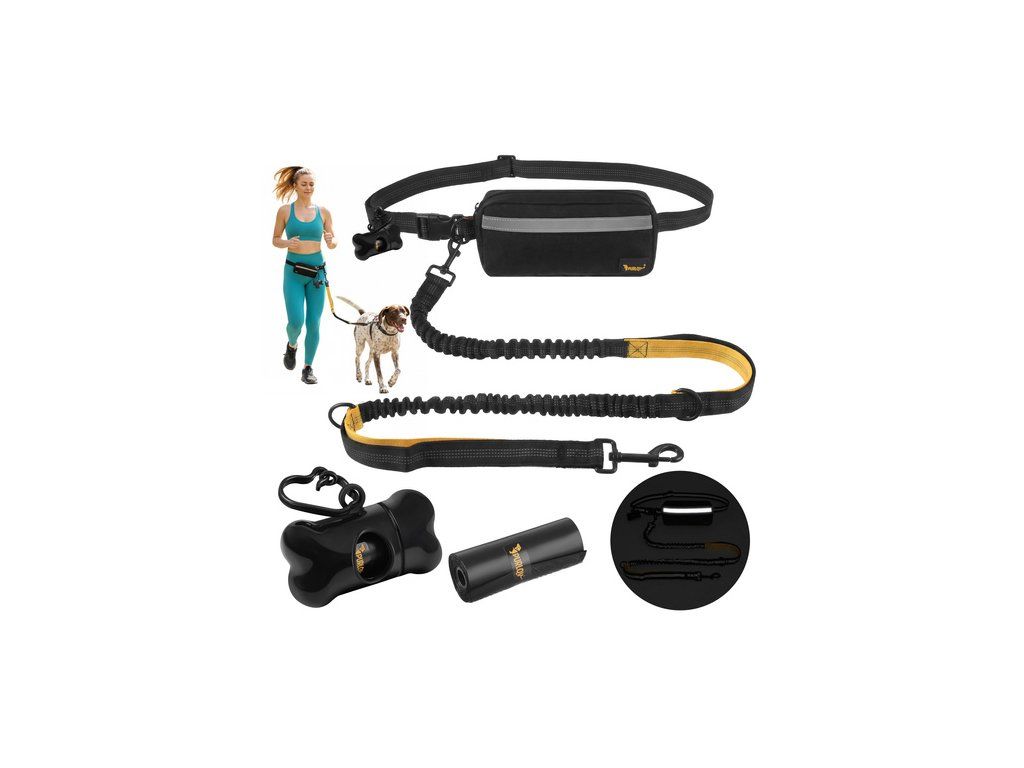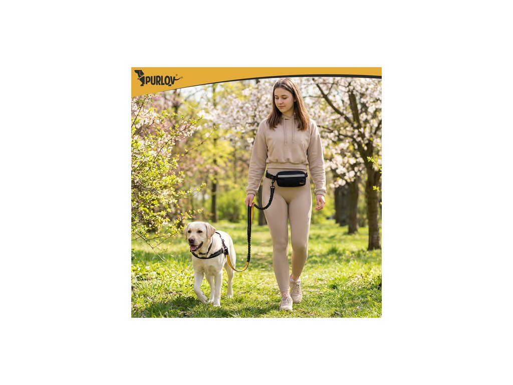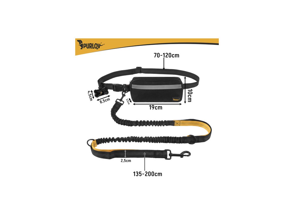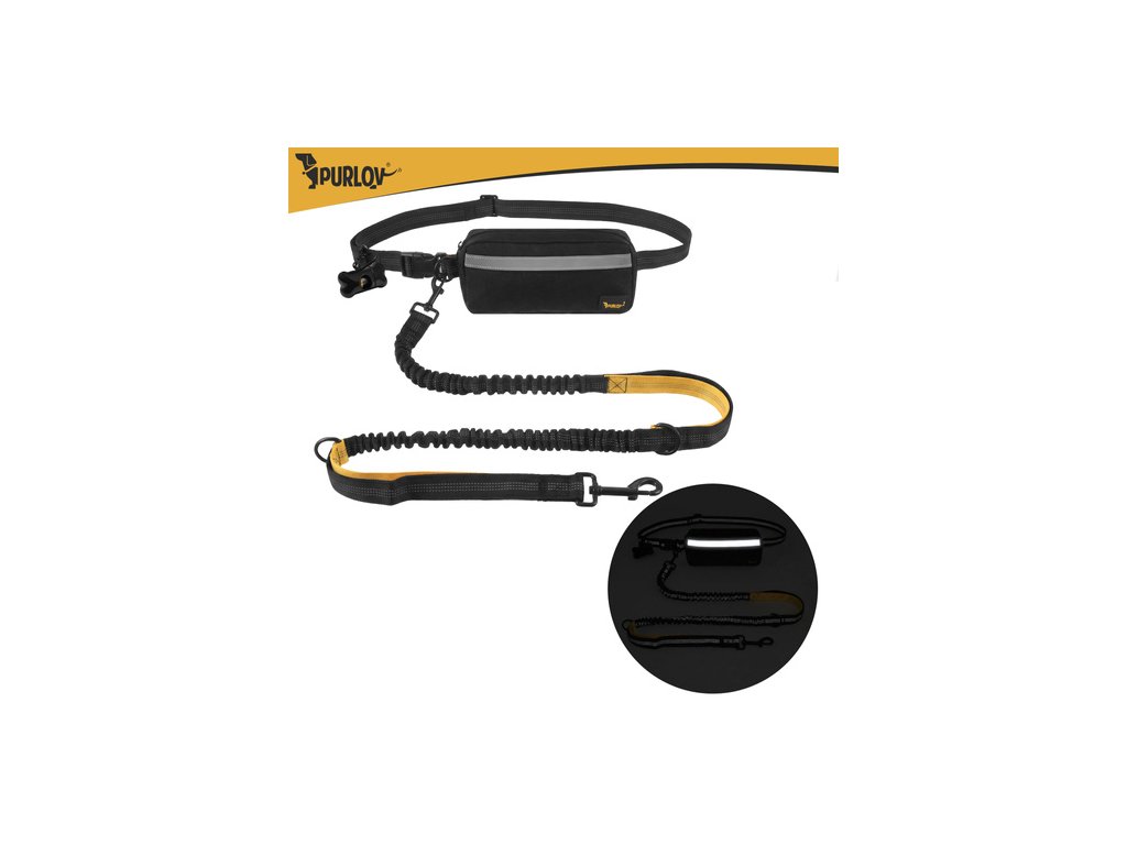 Bederní pás s vodítkem pro běh s velkým psem Purlov - 2 m do 50 kg tlumič nárazů + pouzdro a tašky