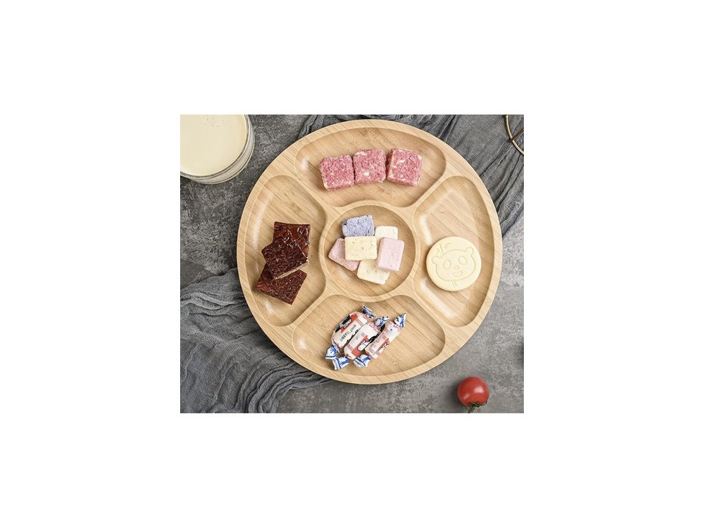Tento talíř na servírování svačin má 5 samostatných přihrádek, které vám umožní podávat různé občerstvení, jako je sýr, uzeniny nebo ovoce, bez rizika jejich smíchání. Díky tomuto hosté si mohou vychutnat různé chutě a vy budete mít na stole pořádek.
