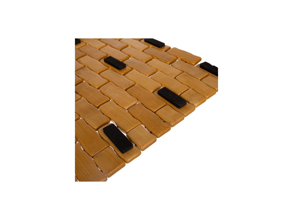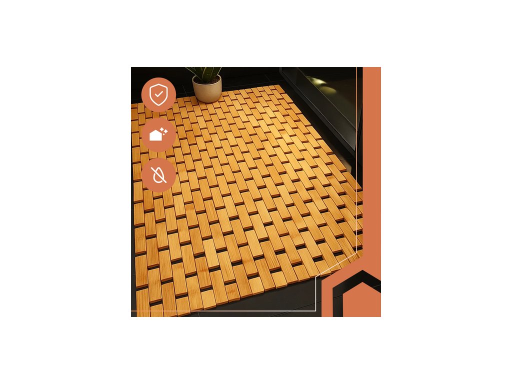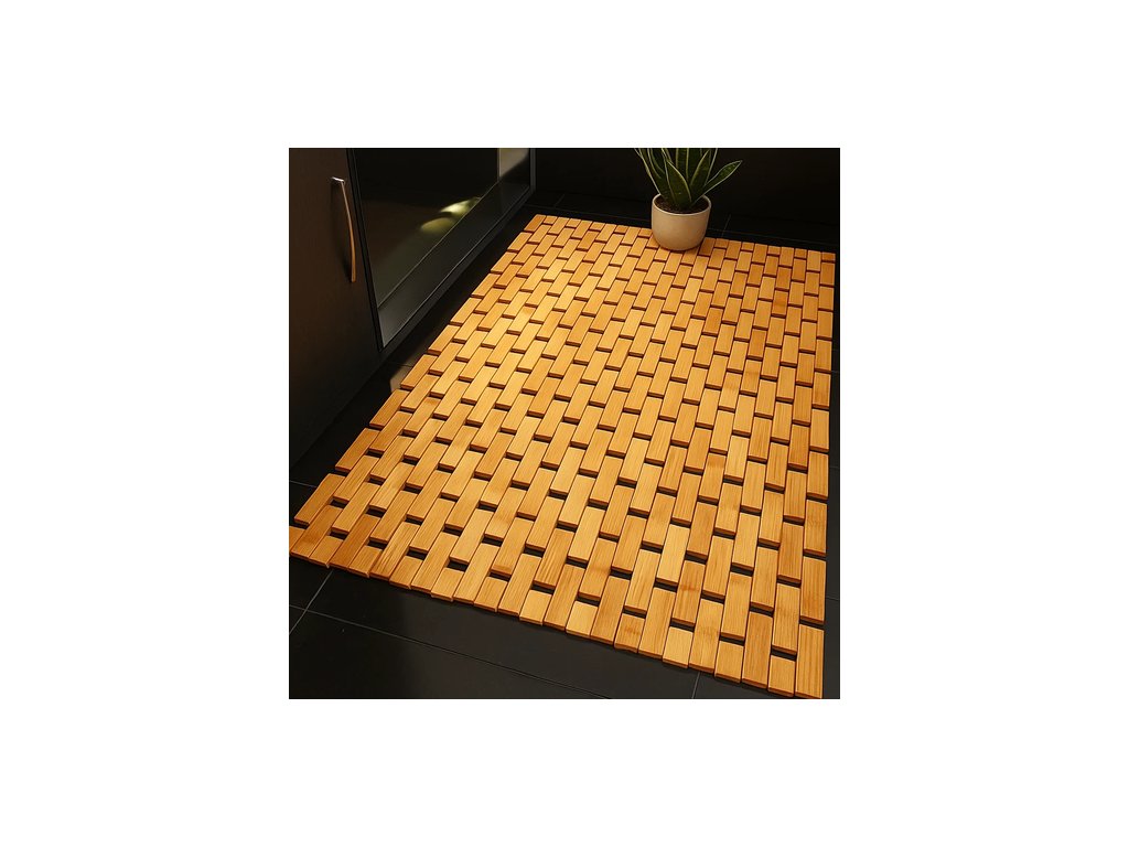 Bambusová koupelnová předložka RUHHY je elegantním a praktickým doplňkem do sprchového koutu nebo umyvadla. Vyrobena z přírodních bambusových lamel, je vodotěsná a rychle schne, což zabraňuje hromadění vlhkosti a plísní. Protiskluzové podložky zvyšují bezpečnost používání na mokrém povrchu.