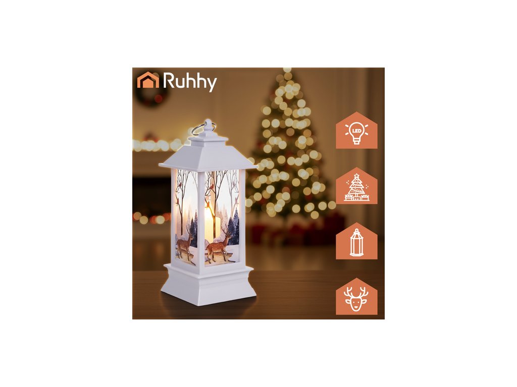 LED lucerna na baterie, vánoční lucerna, vánoční dekorace, bílá ozdoba RUHHY – elegantní doplněk vánoční výzdoby, který potěší