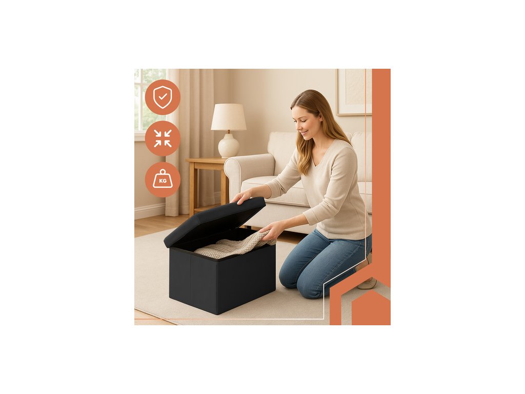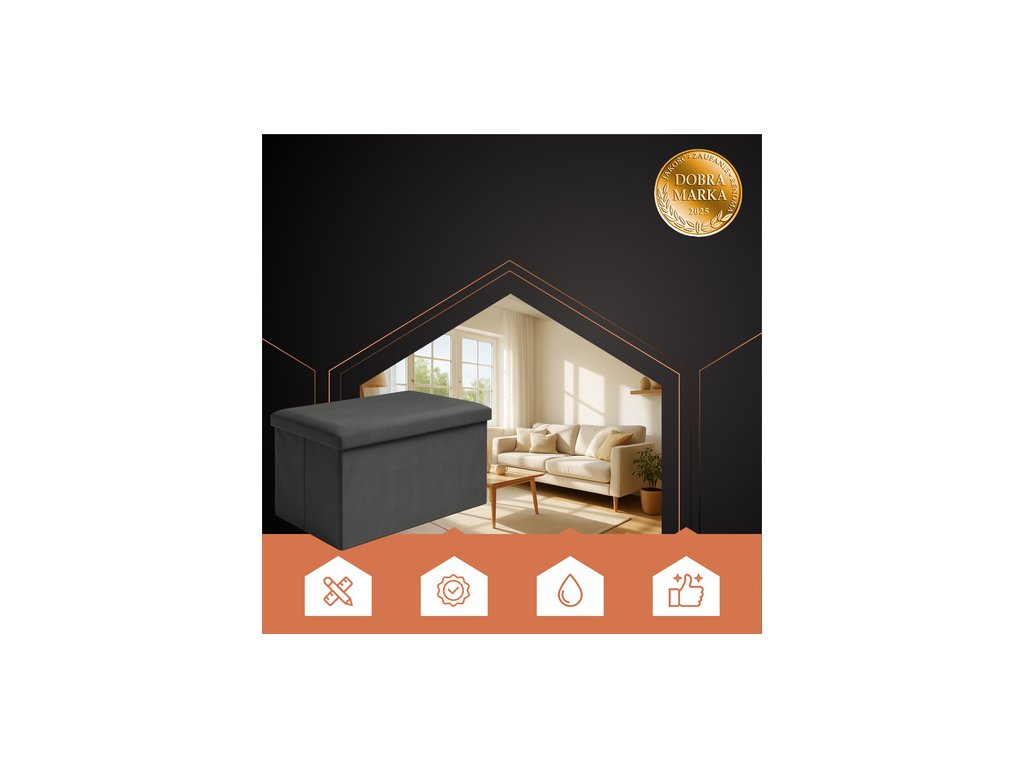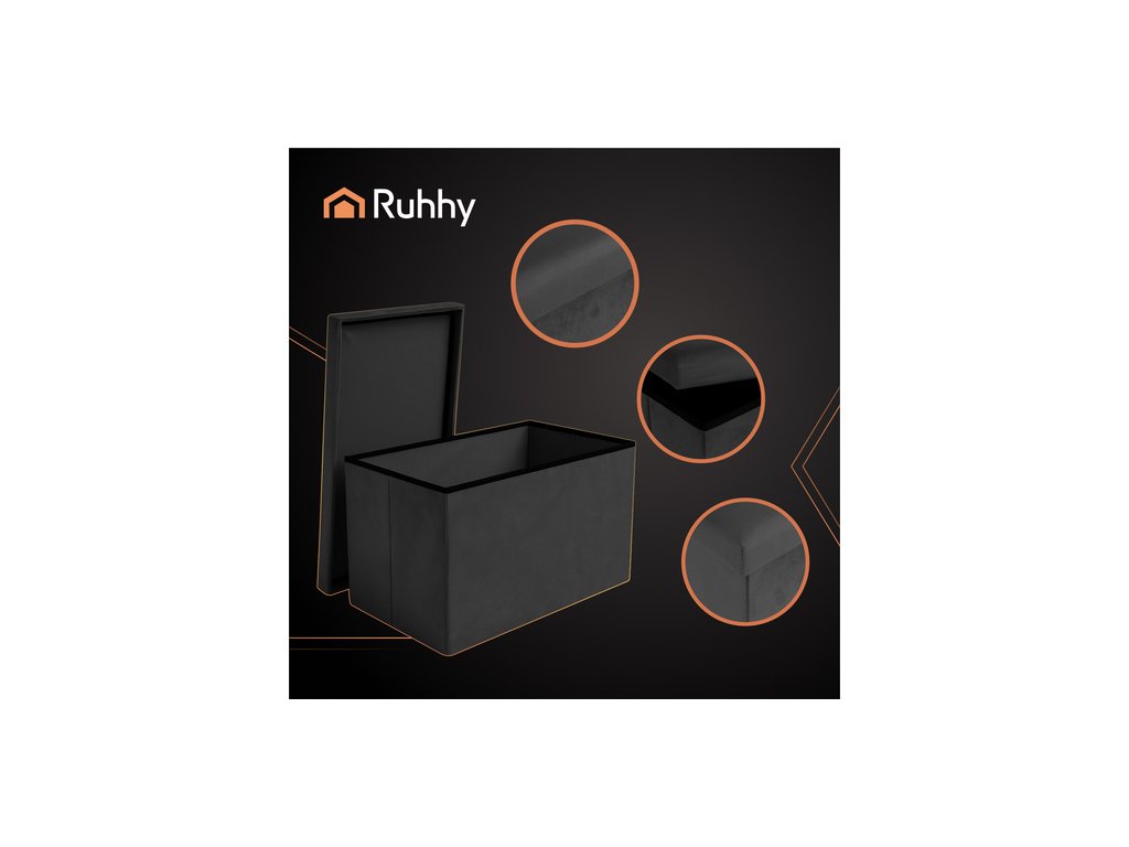 Úložný puf RUHHY je praktickým a stylovým řešením pro váš interiér. Je čalouněný voděodolným sametem s výztuhou z MDF, nabízí měkké sedátko a prostorný úložný prostor o objemu 54 litrů – ideální pro uložení drobností, hraček nebo dek. Jeho skládací design, vysoce kvalitní zpracování a maximální nosnost kombinují funkčnost s elegantním vzhledem – perfektní doplněk do obývacího pokoje, ložnice nebo chodby.