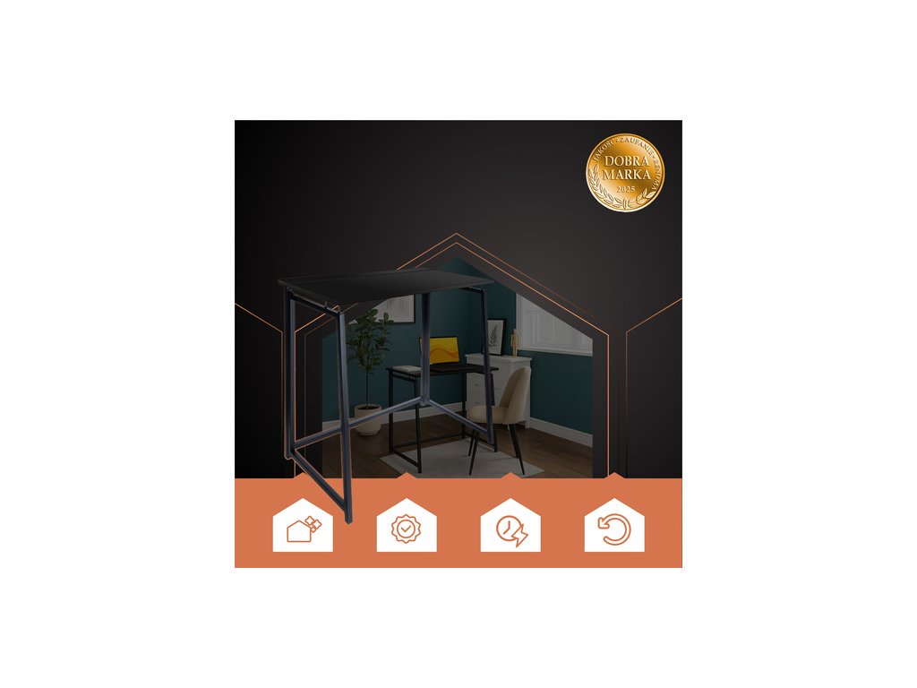 Tento minimalistický stůl v industriálním stylu je funkčním řešením pro malé, moderní interiéry. Jeho skládací design umožňuje rychlé sestavení a uskladnění, když se nepoužívá – ideální pro notebooky, studium a práci na dálku. Lehký a zároveň stabilní, je ideální pro domácí kancelář, pokoj pro mládež nebo obývací pokoj.