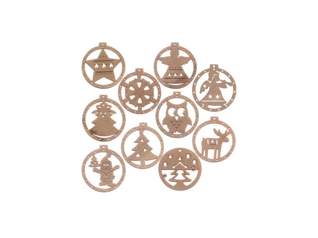 - SADA 10 KULIČEK - tyto jedinečné dřevěné ozdoby jsou nadčasovou nabídkou, která osloví fanoušky klasické krásy a jednoduchosti. Sada obsahuje 10 cetek s krásnými vánočními vzory jako jsou: vánoční stromeček, hvězda, Santa Claus, sob a další motivy spojené se zimním obdobím. Určitě dodají kouzlo každému vánočnímu aranžmá.