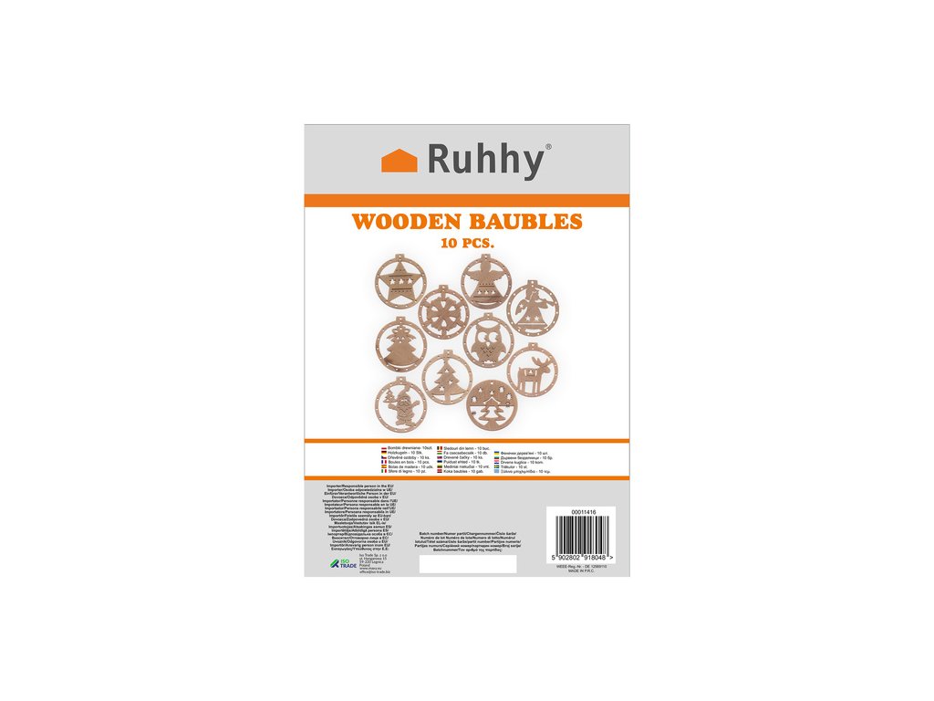 DŘEVĚNÉ VÁNOČNÍ KOULE 10 ks + PROVOZEK NA PŘÍVĚŠKY ZDARMA!