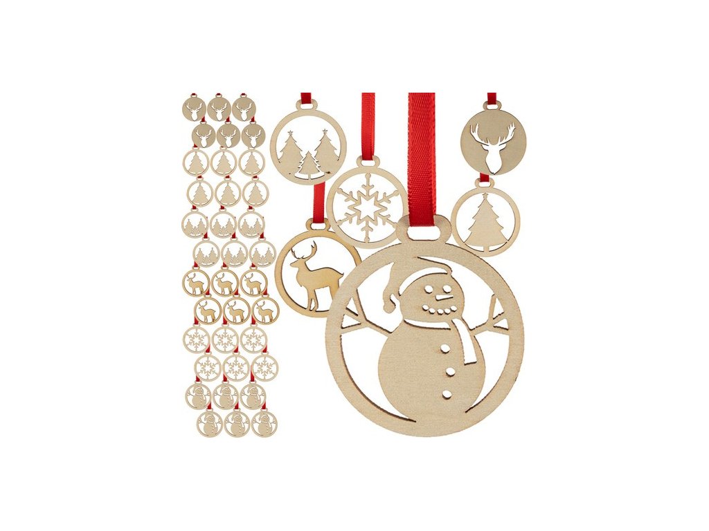 Sada 5,5 cm dřevěných vánočních ozdob, nerozbitné vánoční ozdoby na stromeček!