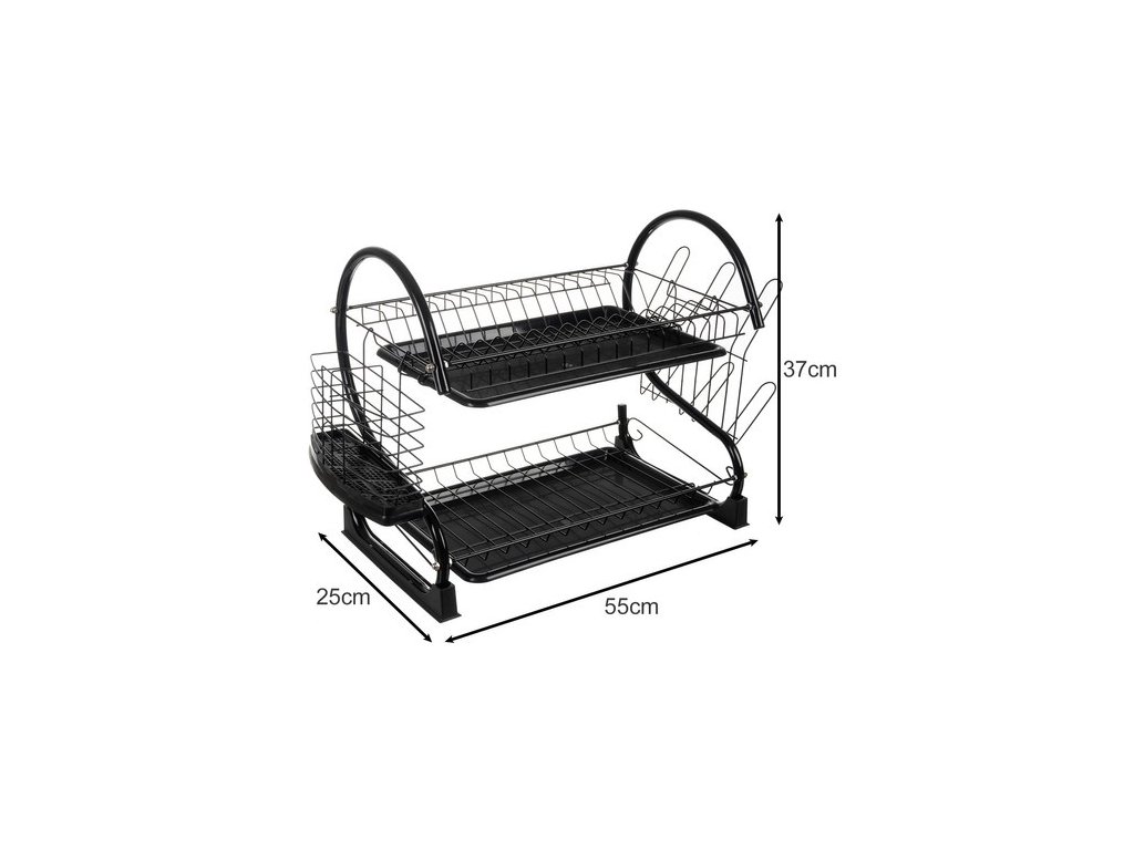 - PEVNÁ KONSTRUKCE A MODERNÍ DESIGN - dvouúrovňový sušák na nádobí zůstala vyrobeno z odolného železa, práškově lakováno s černým povlakem , který poskytuje nejen moderní vzhled, ale také chrání proti korozi . Elegantní černá barva se dokonale hodí k různým stylům kuchyní a dodává industriální, moderní charakter. Pevná konstrukce zaručuje stabilitu dokonce i při plné zatížení plavidel . Sada obsahuje: šrouby a klíč , což umožňuje rychlou a snadnou instalaci sušičky a celé je to vyrobeno pro dlouhodobé používání.