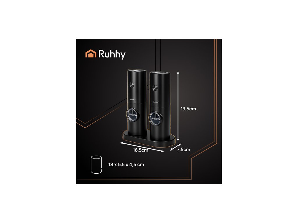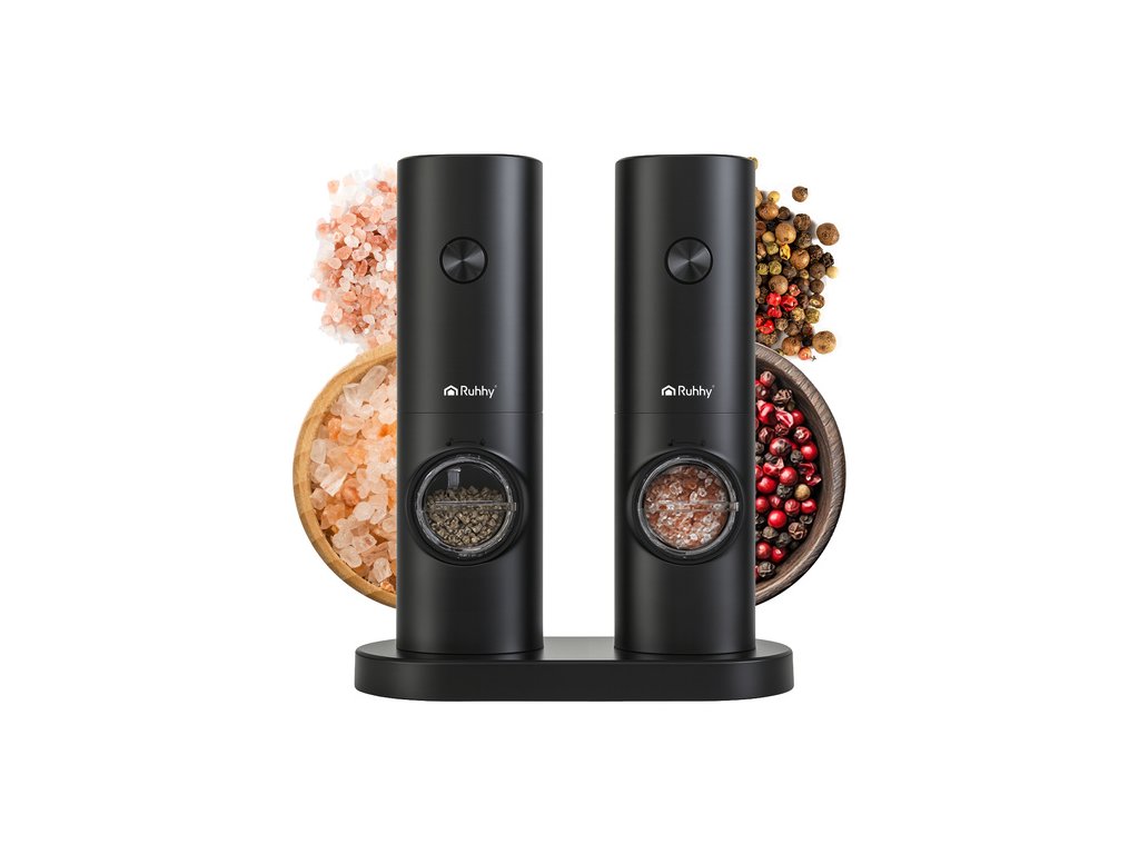 Sada 2 elektrických mlýnků na pepř a sůl RUHHY – styl, přesnost a chuť na vašem stole!