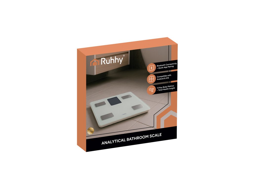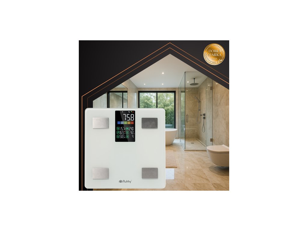Elektronická analytická koupelnová váha RUHHY BMI do 226 kg s analýzou těla – komplexní kontrola zdraví ve vašem chytrém telefonu!