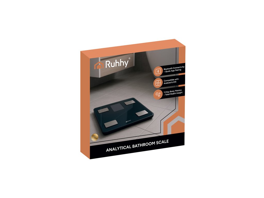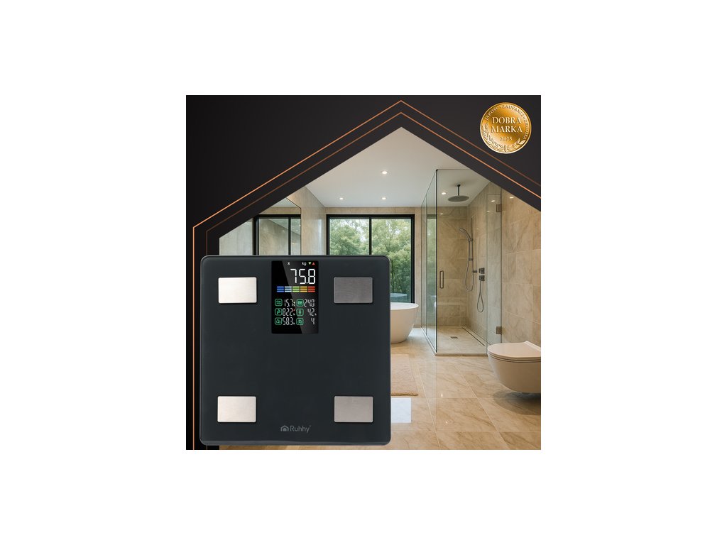 Elektronická analytická koupelnová váha RUHHY BMI do 226 kg s analýzou těla – komplexní kontrola zdraví ve vašem chytrém telefonu!