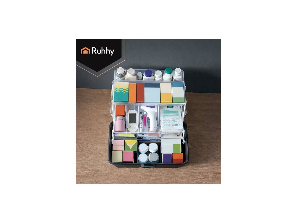 - DVOUPADOVÉ ROZŠÍŘITELNÉ POLICE PRO SNADNÝ PŘÍSTUP - organizér je vybaven dvouúrovňovými, sklopnými policemi s přihrádkami , které umožňují snadná správa a třídění léků, kosmetiky, laků na nehty nebo jiné články . Police tyhle jsou dokonalé pro ukládání menších předmětů, jako jsou pilulky, masti, obvazy, náplasti, nástroje pro úpravu nehtů, sponky a sponky do vlasů , takže je snazší rychle najít, co potřebujete. Díky průhledná horní část nádoby uživatel může z snadno identifikovat obsah bez nutnosti otevírat organizér, což urychluje přístup k potřebným lékům.