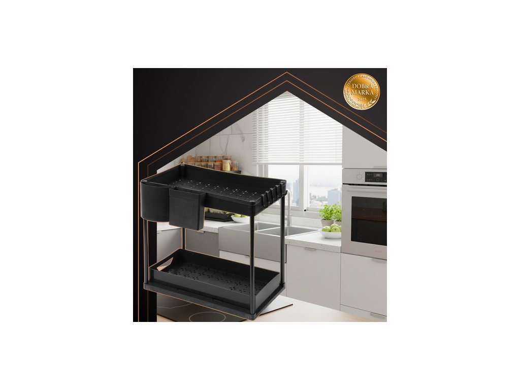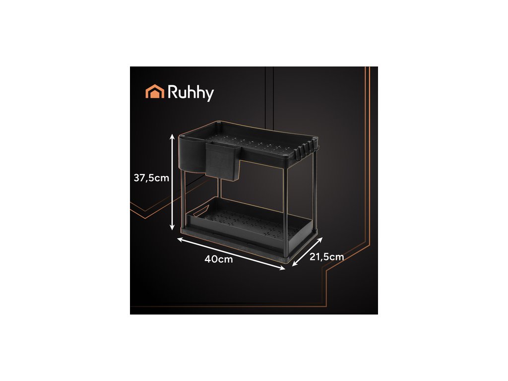 Ruhhy Organizér pod dřez, 2 úrovně, výsuvná černá kuchyňská police -