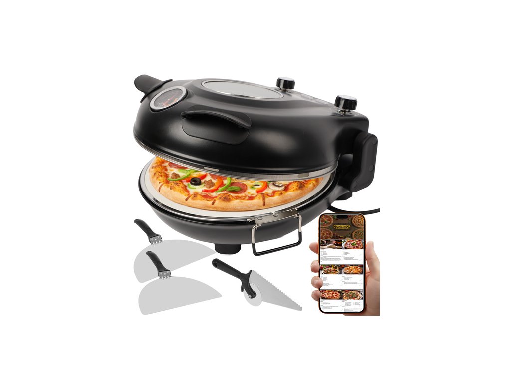 Mini pec na pizzu RUHHY nabízí teploty až 420 °C, takže Získáte křupavou kůrku a chuť italské pizzerie . Keramický kámen, časovač, cirkulace vzduchu a průhledné víko umožňují dokonalé pečení bez připálení nebo dohadů. Sada obsahuje také e-knihu receptů, kterou si můžete stáhnout pomocí QR kódu – praktická inspirace pro pizzy, focaccie a pečivo, které posune vaše vaření na další úroveň.