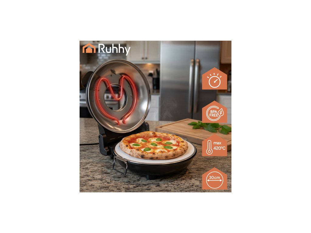 Elektrická pec na pizzu RUHHY 1200W 420°C s kamenem a příslušenstvím