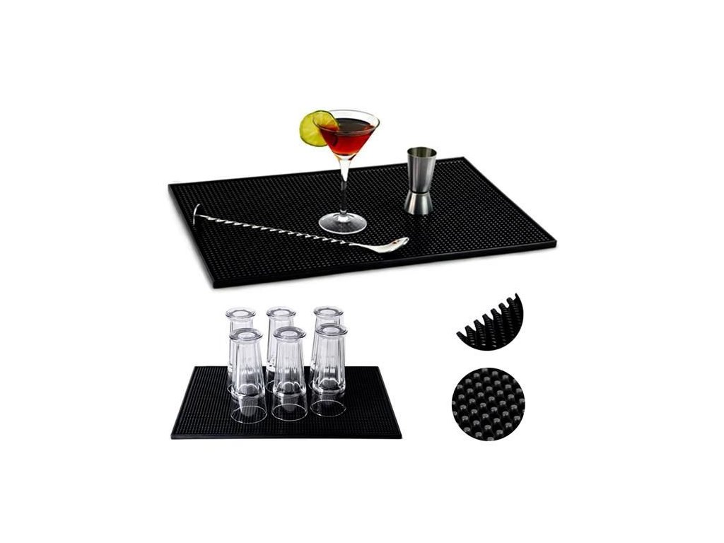 Podložka skvěle poslouží i jako podložka na přípravu nápojů na baru. To je dokonalá vychytávka pro barmana – nemusí pokaždé utírat mokrý pult, stačí mu připravit drinky na podložce.