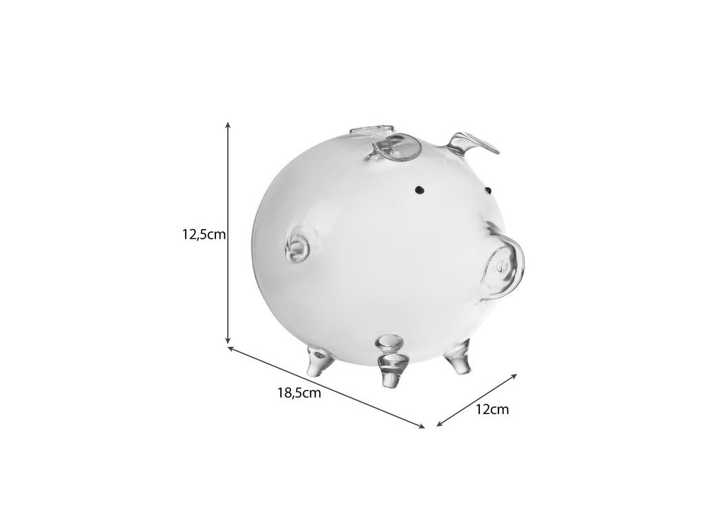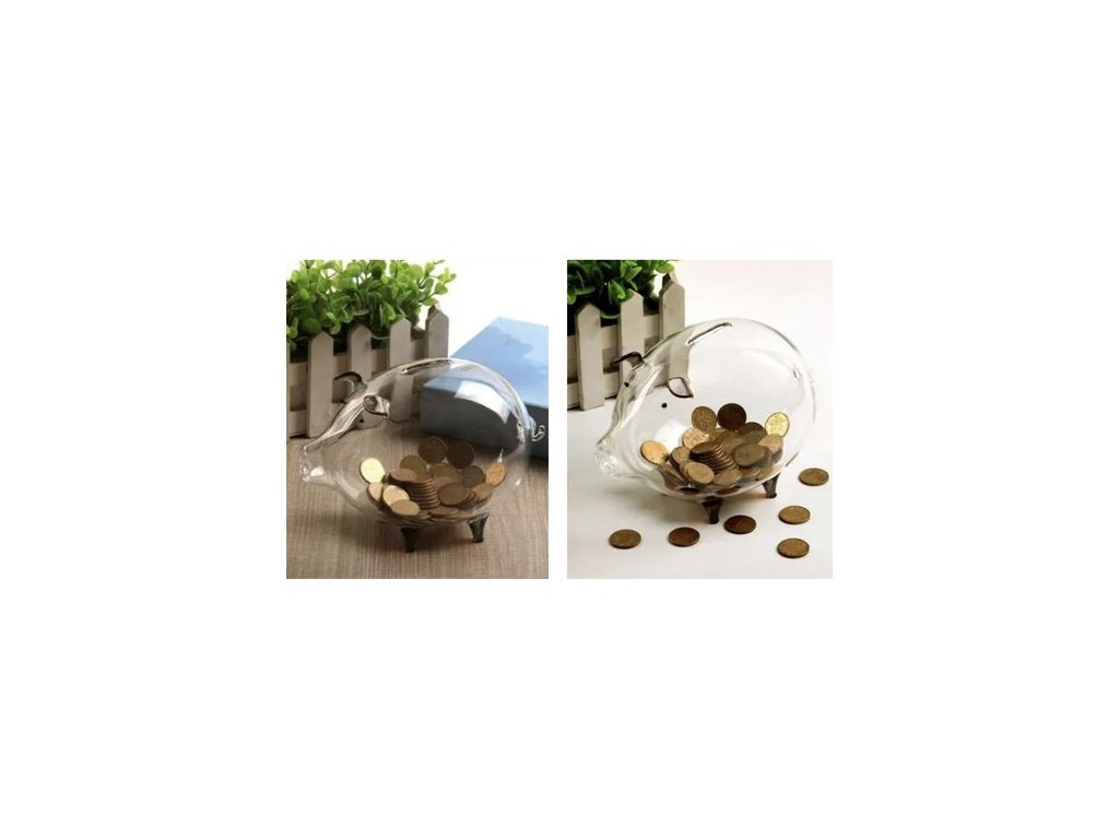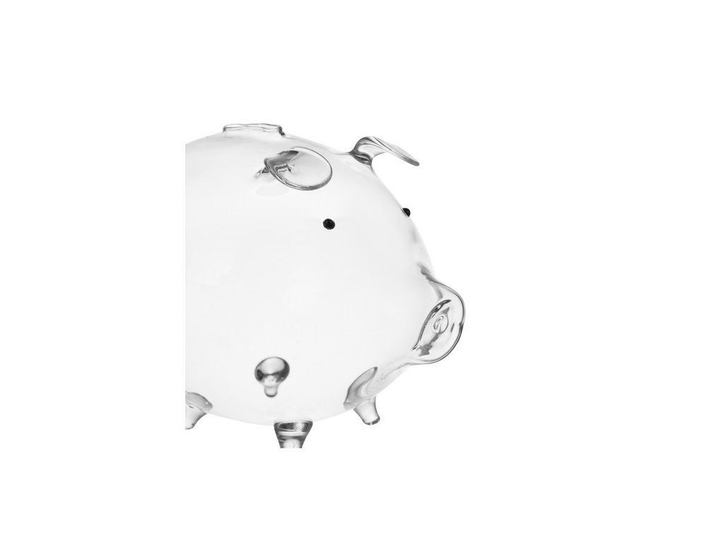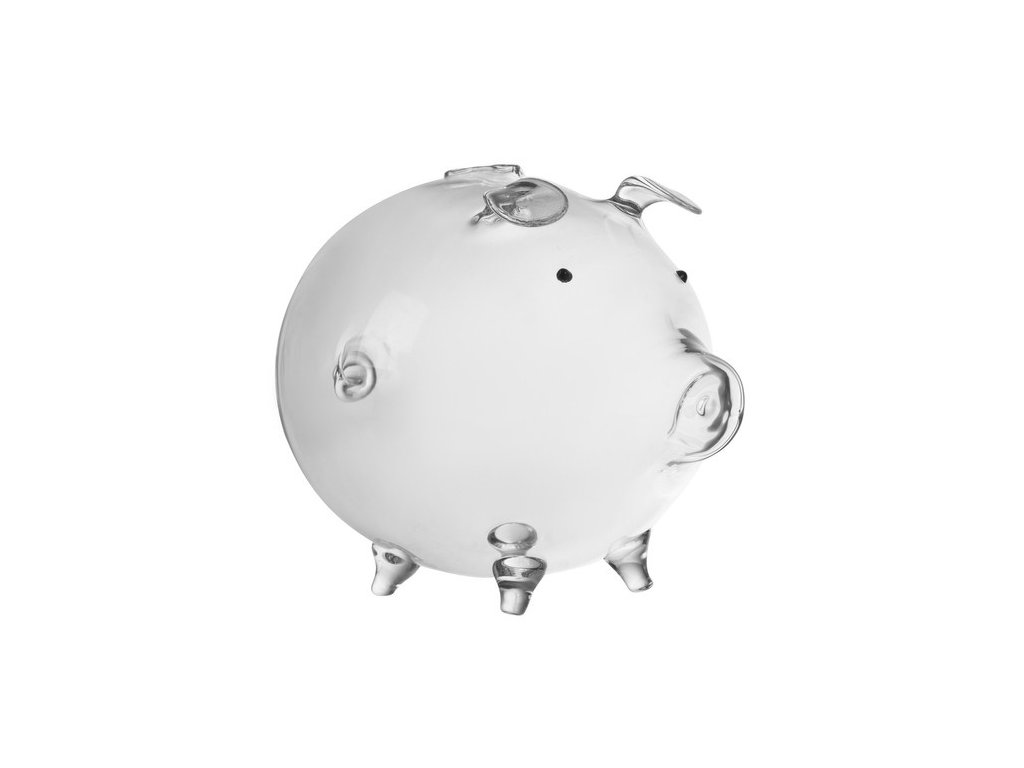 Prasátko je oblíbený a tradiční způsob ukládání peněz. Jedná se o typ kontejneru používaného ke sběru mincí nebo bankovek. Prasátko je vyrobeno z průhledného skla, takže množství mincí máte vždy pod kontrolou. Všechny prvky, jako je tlama, nohy, uši a ocas prasete, jsou vyrobeny s důrazem na detail.