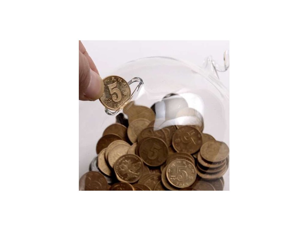 - SKLO / TRANSPARENTNÍ - v průhledném prasátku vidíte množství peněz. To vám může pomoci kontrolovat vaše výdaje a předcházet plýtvání. Vložit peníze do prasátka znamená šetřit, dokud se banka nerozbije .