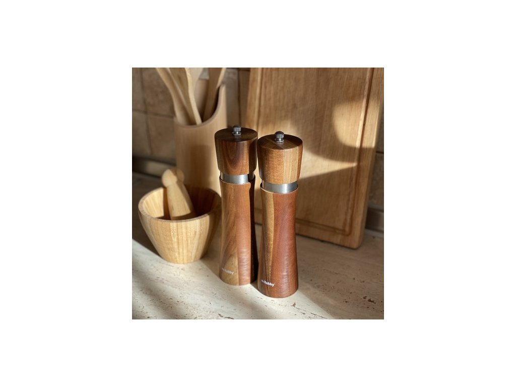 Sada 2 dřevěných mlýnků na sůl a pepř s keramickým mechanismem a nastavitelnou tloušťkou mletí!