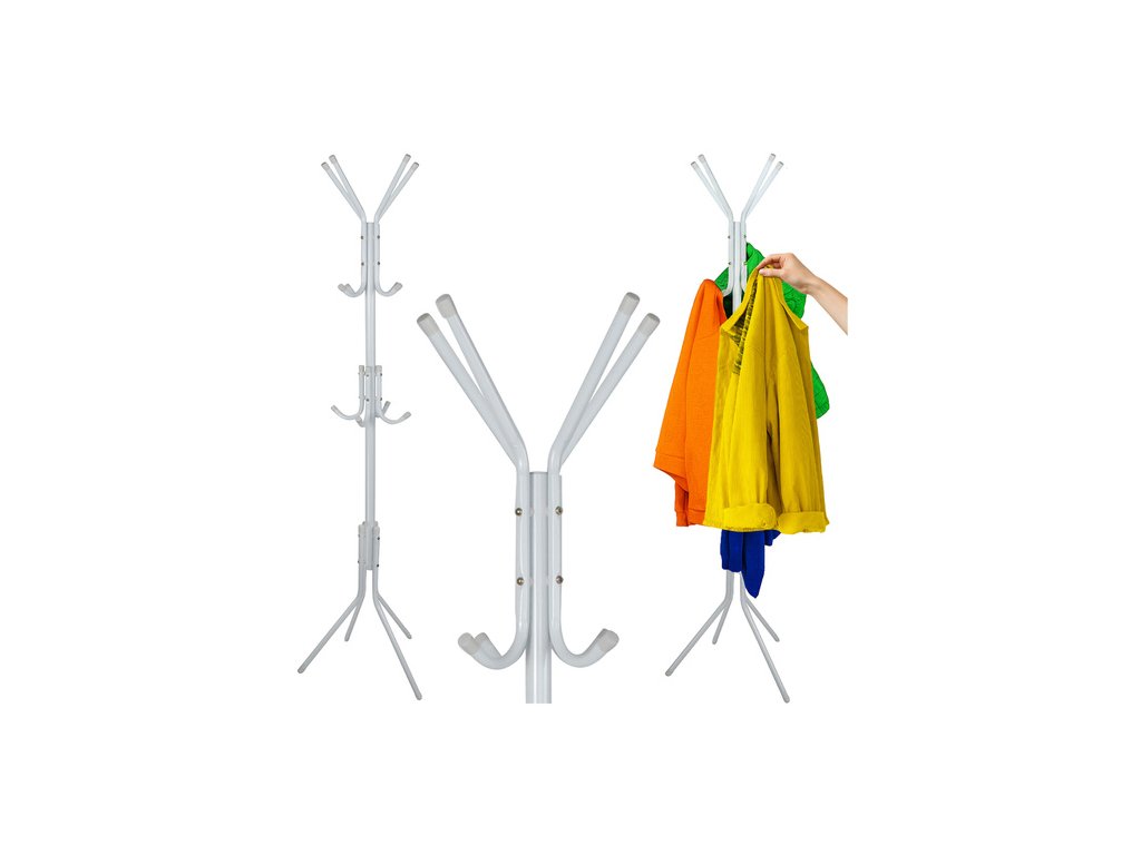 Stojanový věšák na oblečení, bundy, stabilní podlahový stojan, bílý kov, na 4 nohách RUHHY – praktické řešení do každého interiéru