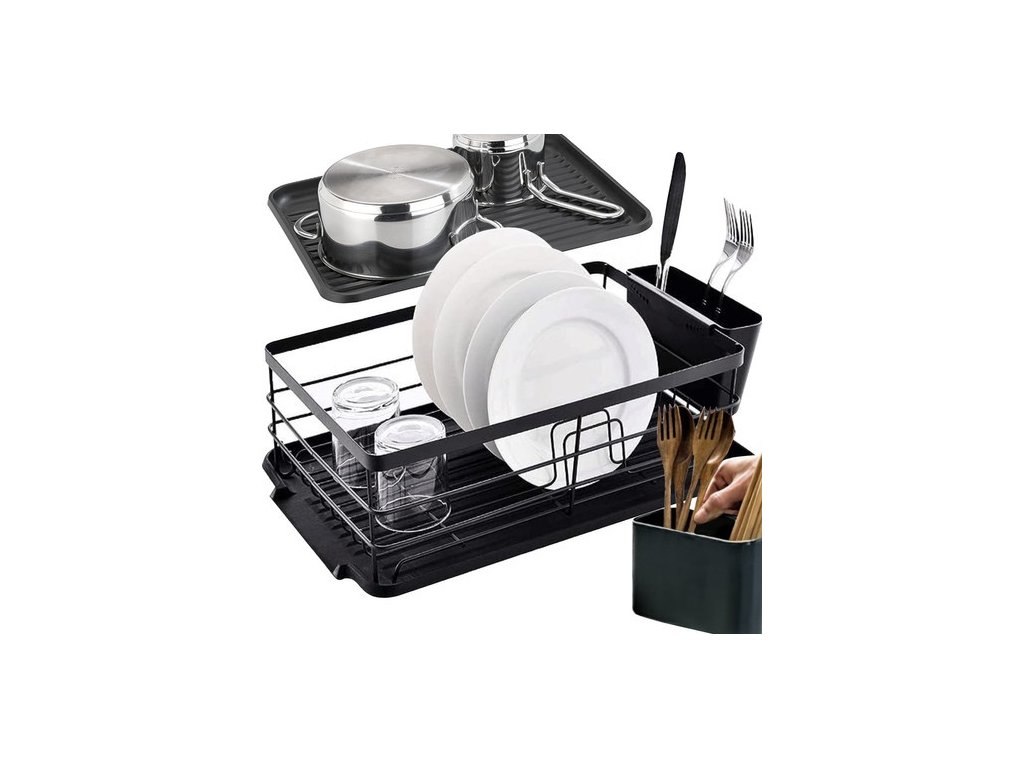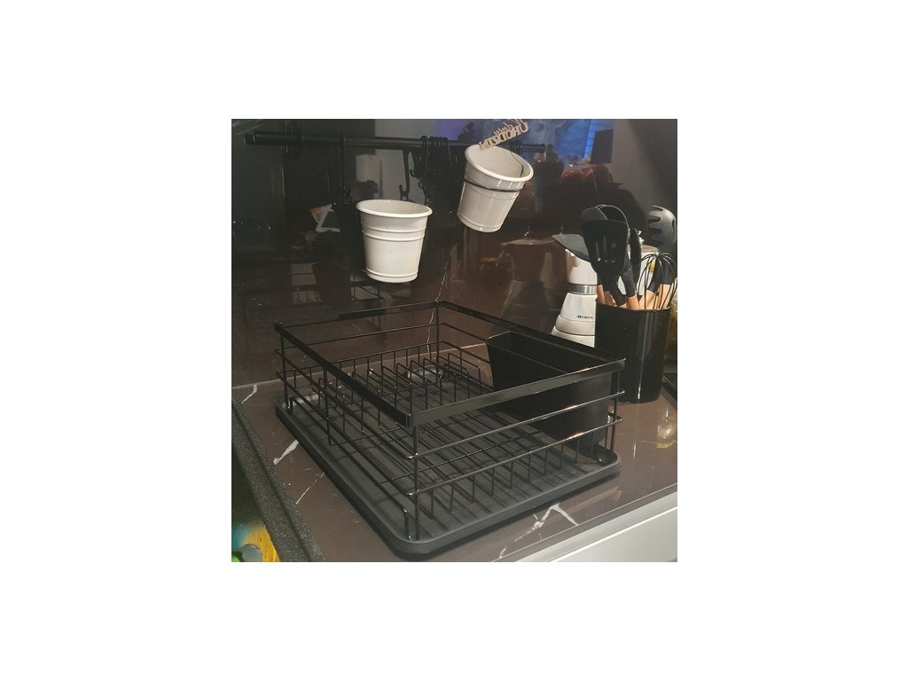 VELKÁ ČERNÁ ŘADA SUŠENÍ NÁDOBÍ S ODKAPÁVKOU