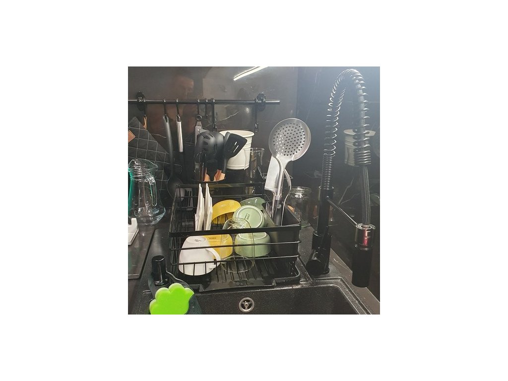 - ZÁSOBNÍK SE SNADNÝM VYPOUŠTĚNÍM VODY - Černý stojan na sušení nádobí má speciálně navržený tác se snadným odtokem vody. Umístěním odkapávače v blízkosti dřezu bude voda samostatně protékat bočním výtokem. Od této chvíle se nemusíte bát vylévat vodu z vaničky, stačí ji postavit vedle dřezu!