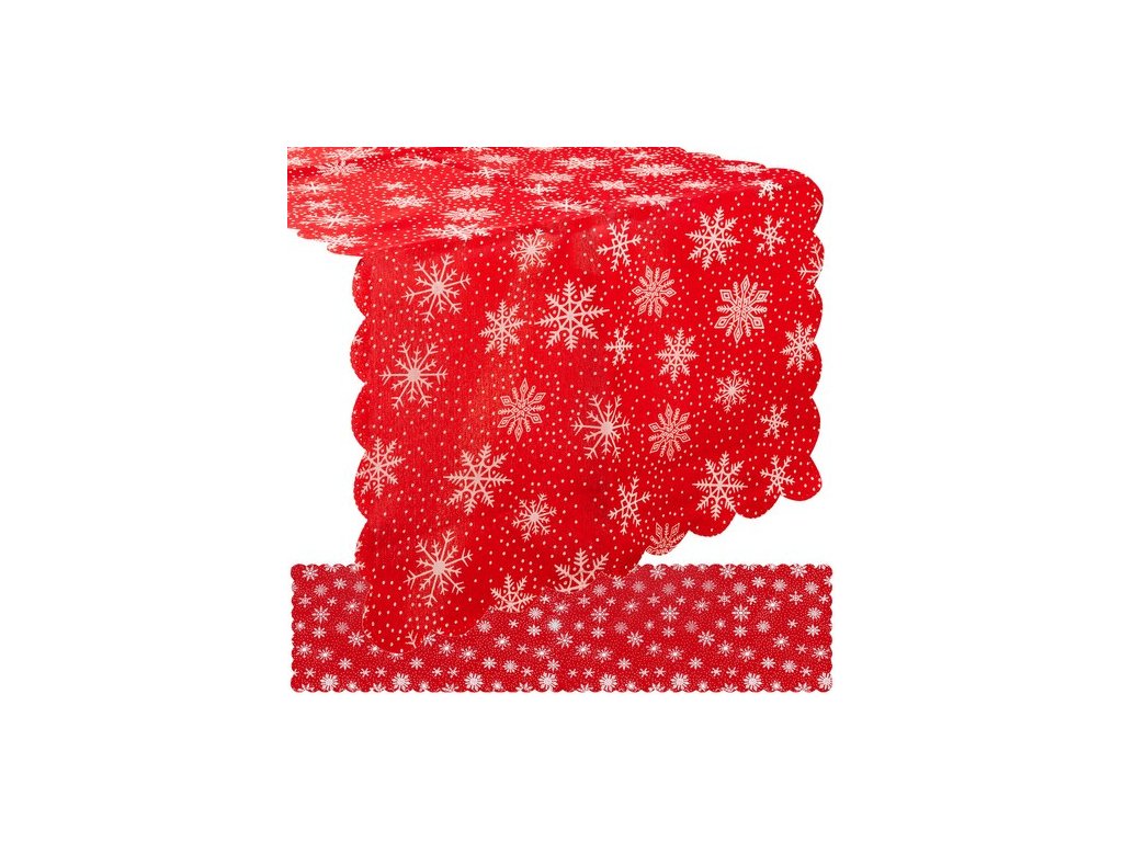 DLOUHÝ VÁNOČNÍ STŮL, ČERVENÝ, S BÍLÝMI VLOČKAMI, 150 x 35 cm